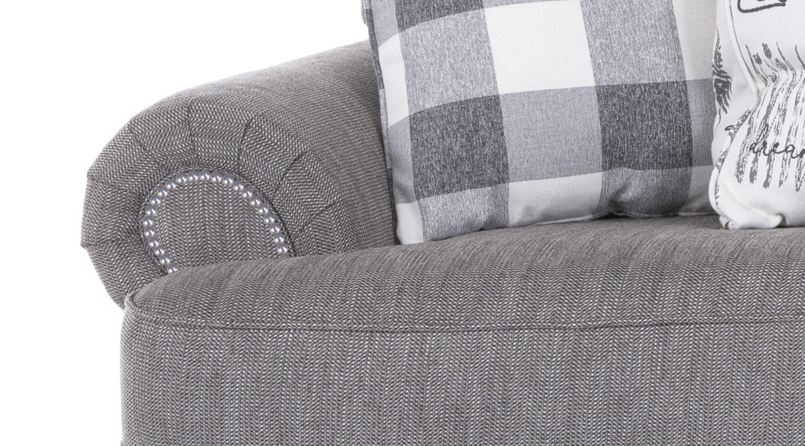 - Optional: Small Pewter, Antique Brass, Brass, Gold or Nickel finish nail studs with self-welt OR self-welt ONLY. Nail studs along arm facing