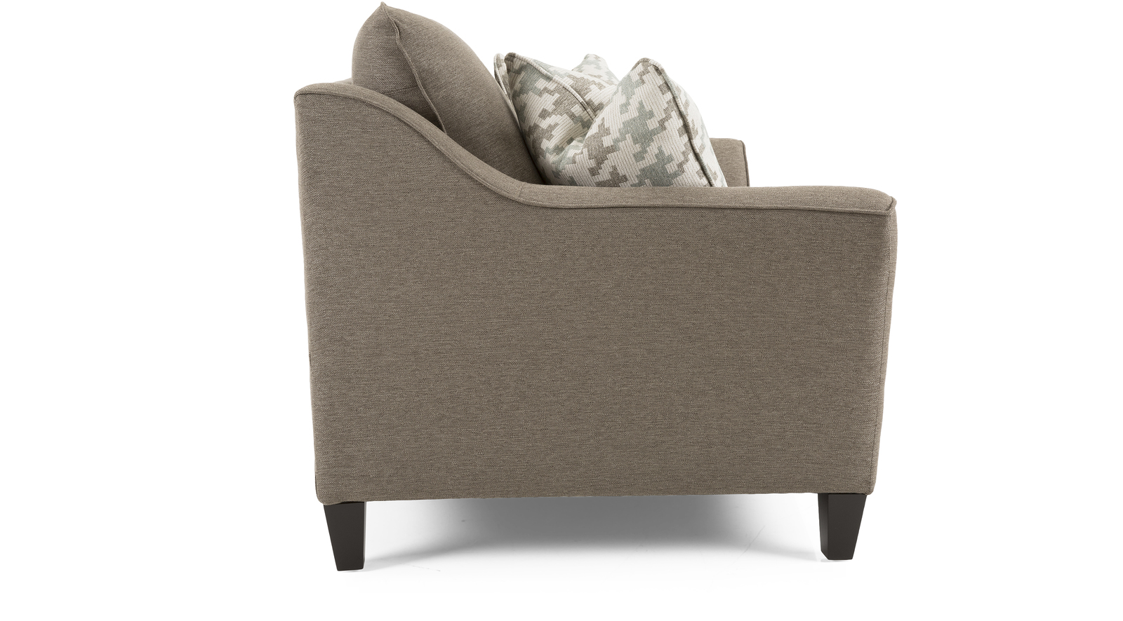 This beautifully crafted curved arm sofa is sleek yet approachable. Perfect for family friendly homes who like fashion and function. Semi-attached back with box seating.