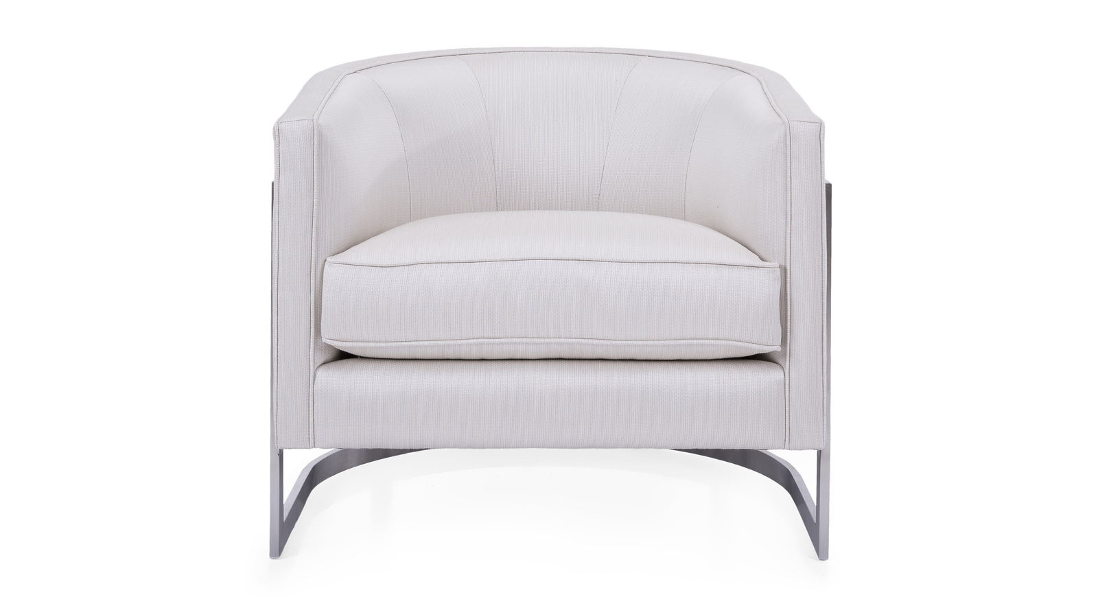 Chair is a 1970’s inspired silhouette, a modern take on the club chair. Supported by a sleek metal frame, the sloped arm design offers comfort with an enveloping rounded back.