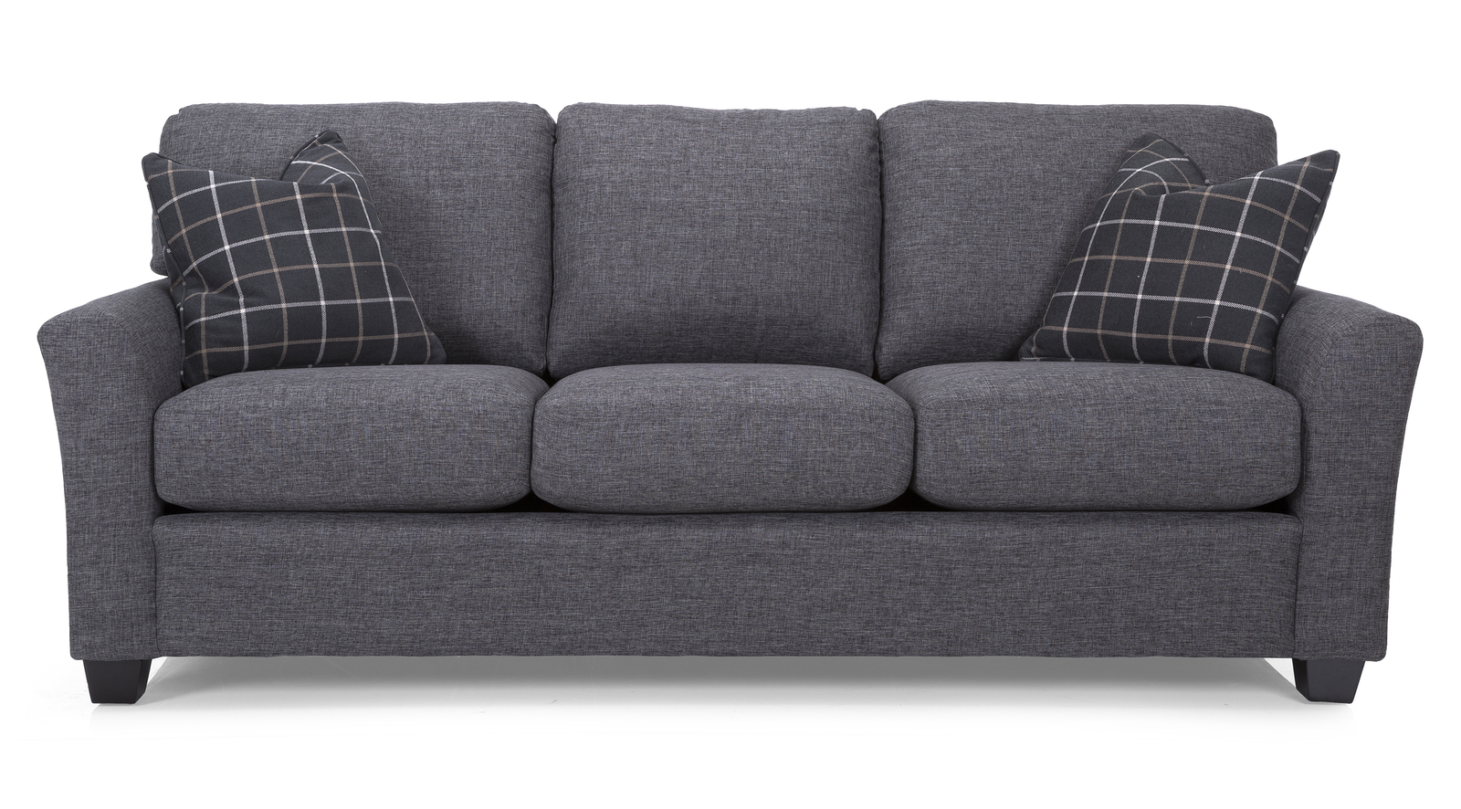Sofa set has a semi-attached back and box seat, with two arm styles to choose from. A very transitional sofa that can easily fit into a modern lifestyle. Made by a Canadian manufacturer.