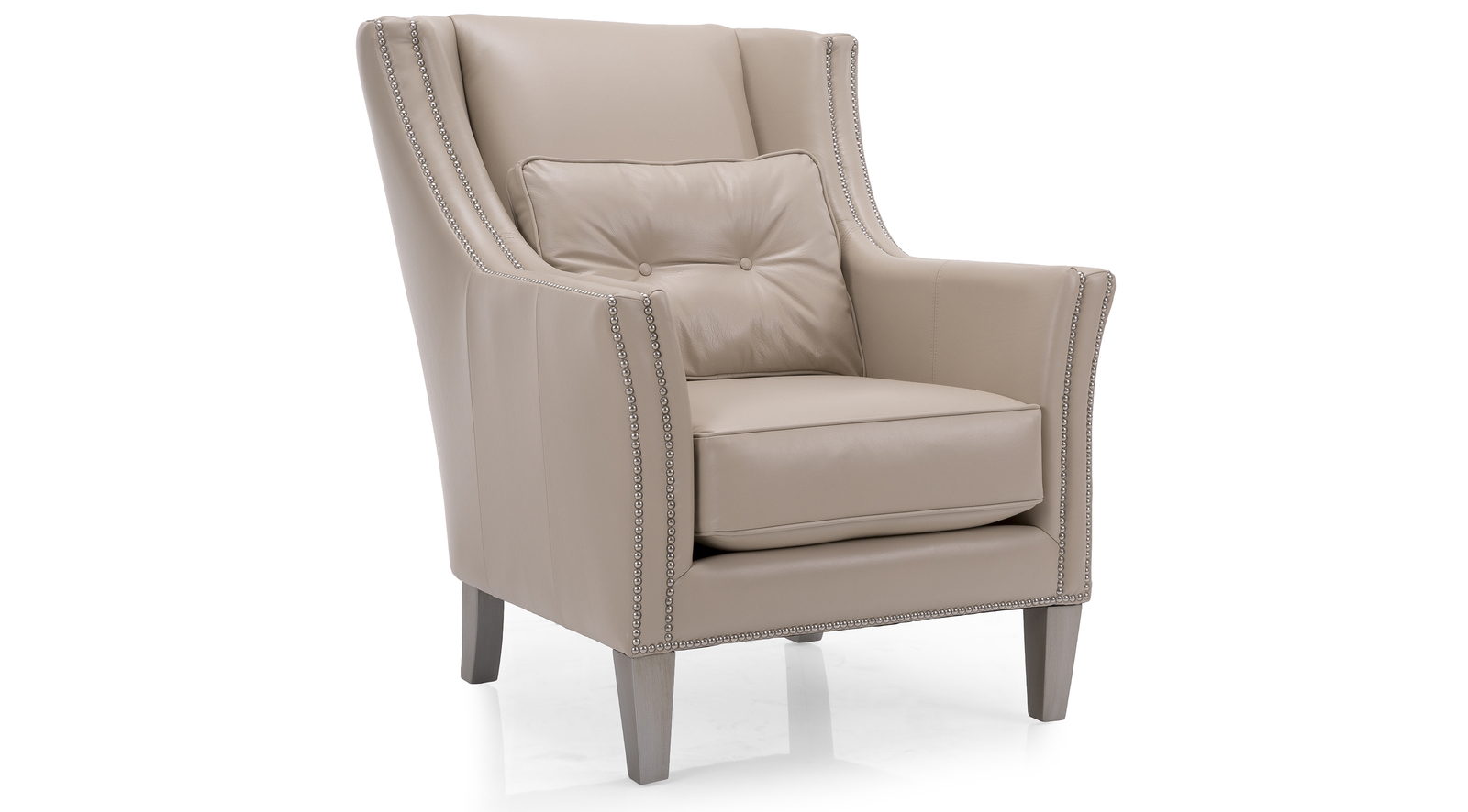 A chair built for comfort and style. Beautifully detailed with double row nail studs applied to the arm facing and along the bottom band of the chair. Lumbar pillow with hand button tufting adds to the comfort of this chair. Easily fits into a traditional or transitional lifestyle.