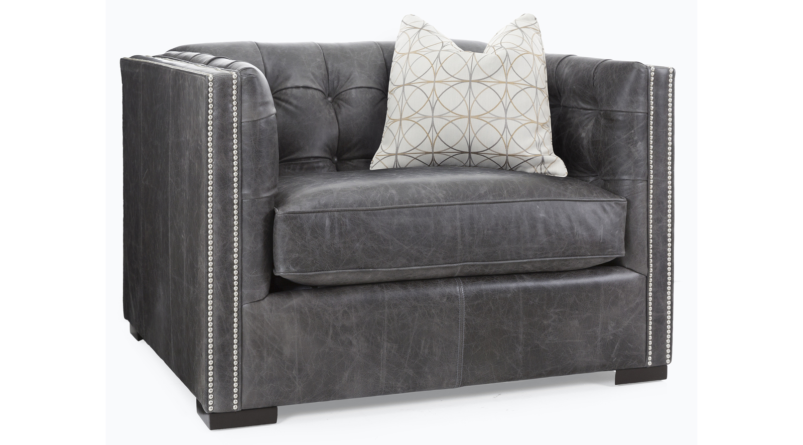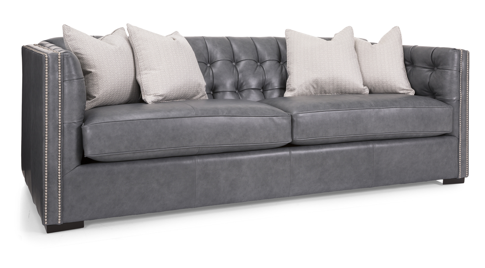 The Grand Salon sofa evokes the tailored elegance of English Art Deco. This sofa features a square frame with high arms adorned with optional double row of nail studs along arm facing. Graceful hand tufting and expertly fitted upholstery applied to a North American hard wood frame built to withstand the strain of everyday living.