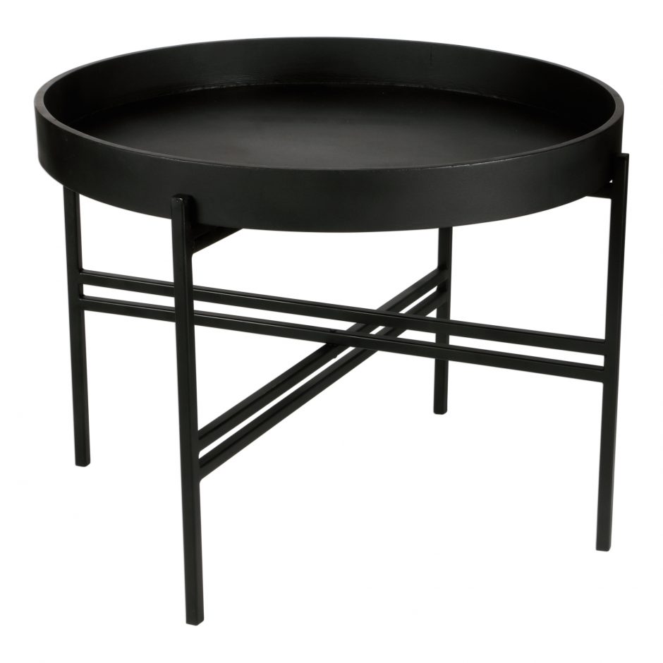 Complete the look with simple geometry. Aces angular iron frame blends seamlessly into this circular tray top design that is keen on keeping your morning coffee routine in the zone with its lipped edge. Dark, moody, completely contemporary modern design. Try this pared-back, minimal statement coffee table alongside its counter partner, the Ace side table – a sleek look for a smart home.