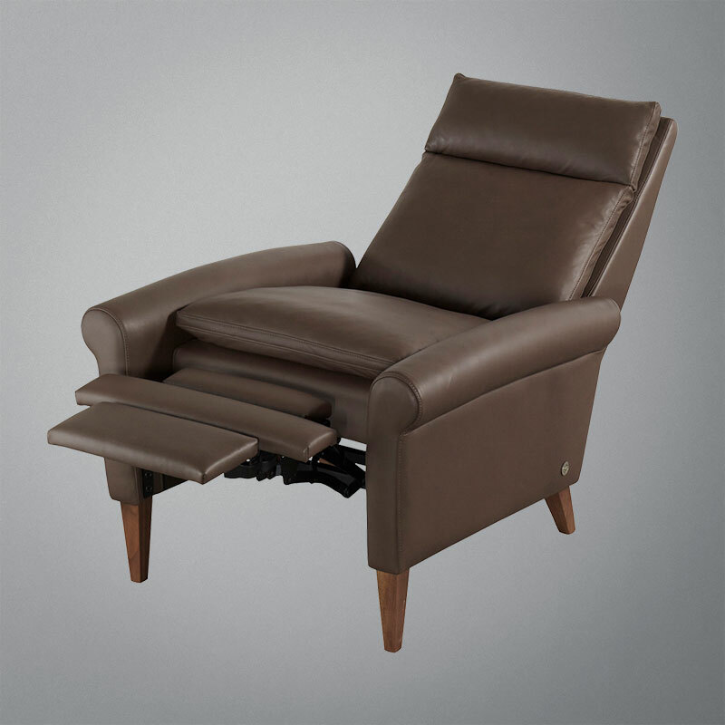 Down-filled pillow tops add softness to the headrest, seat, and back, bringing a modern twist to a timeless silhouette. One simple push back motion reveals a recline function that’s sure to surprise any guest. The Burke is truly a beautiful accent chair that has all of the comfort of a classic recliner.