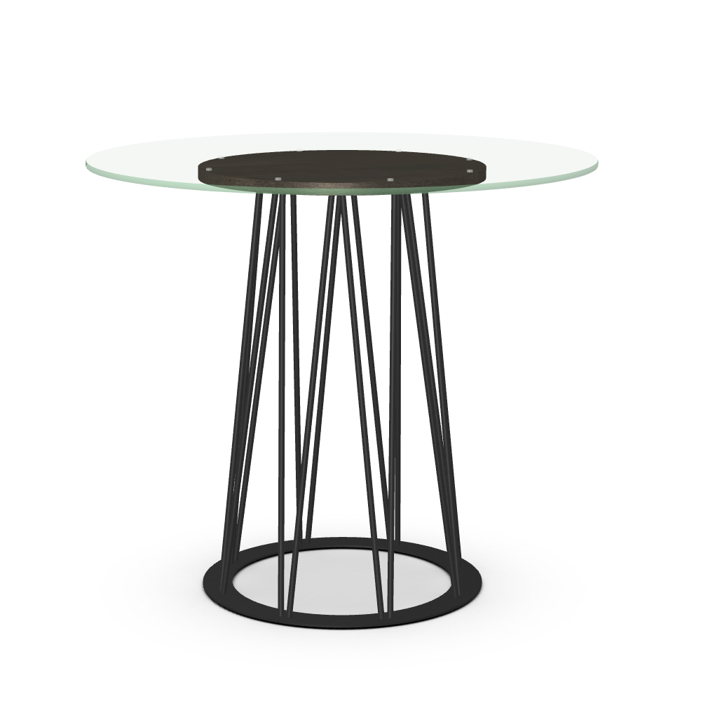 | Clear Glass | Birch Veneer | 42” dia. | Counter height | 24 Magnetite | 39 Verdastro |
