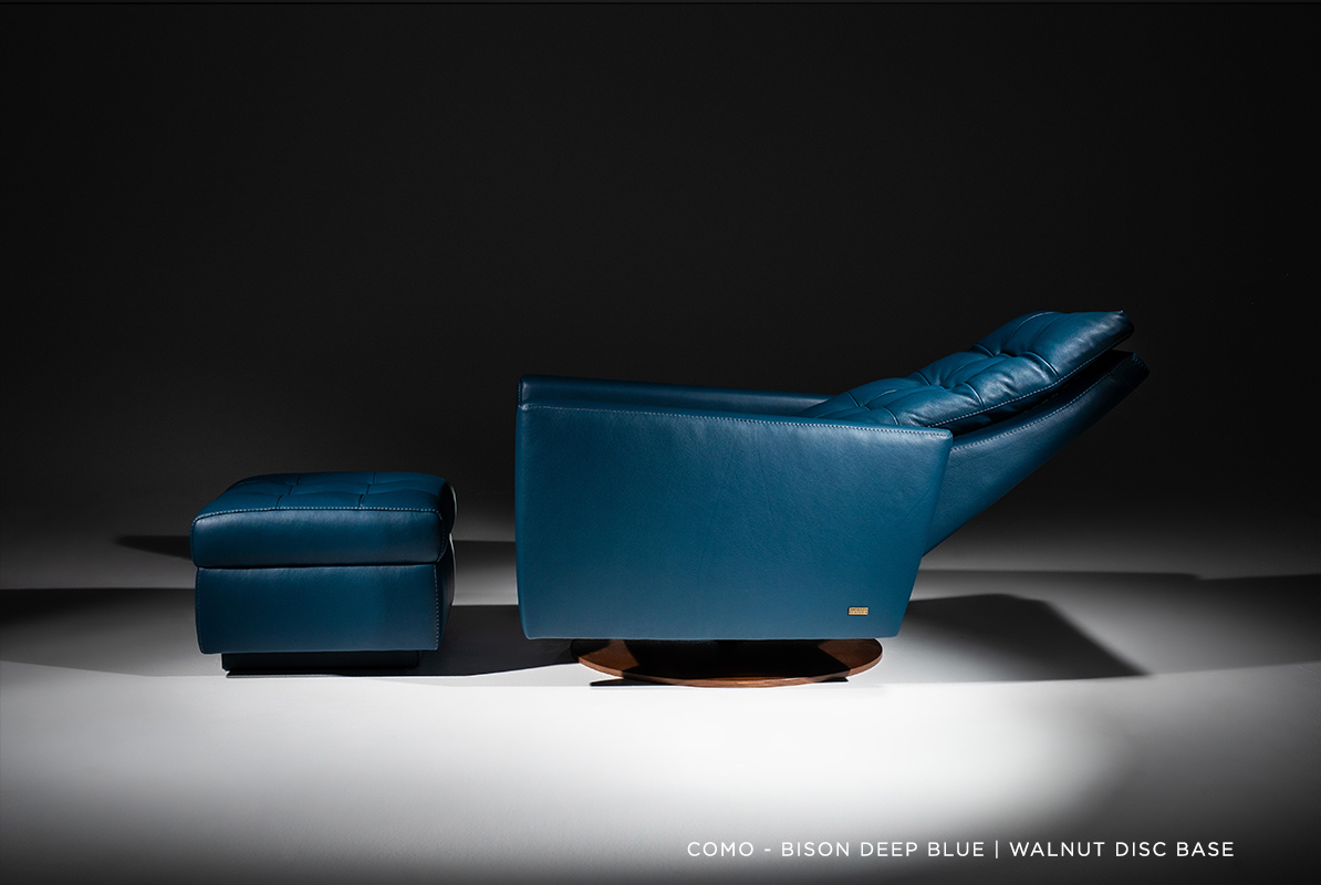 Contoured taper arms nearly reach the floor give Como its graceful, timeless silhouette. The plush buttonless tufting on the back and seat cushions provide superior comfort with every move. This zero-gravity recliner allows you to experience the comfort and feel of an afternoon boat ride on calm waters – from the comfort of your living room. Design yours with our collection of premium leather and fabric. Choose from four bases, including an all-new stylish natural walnut four-star base.
