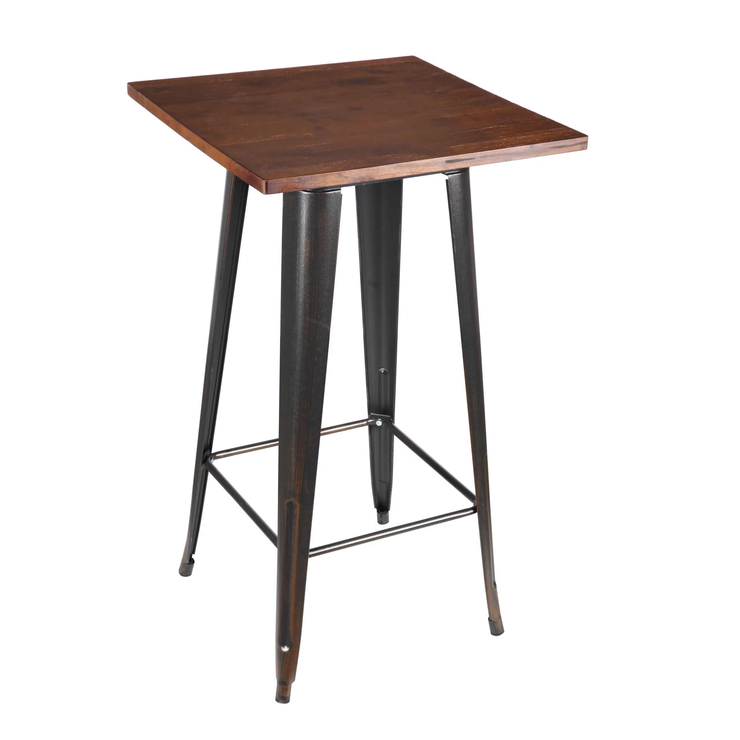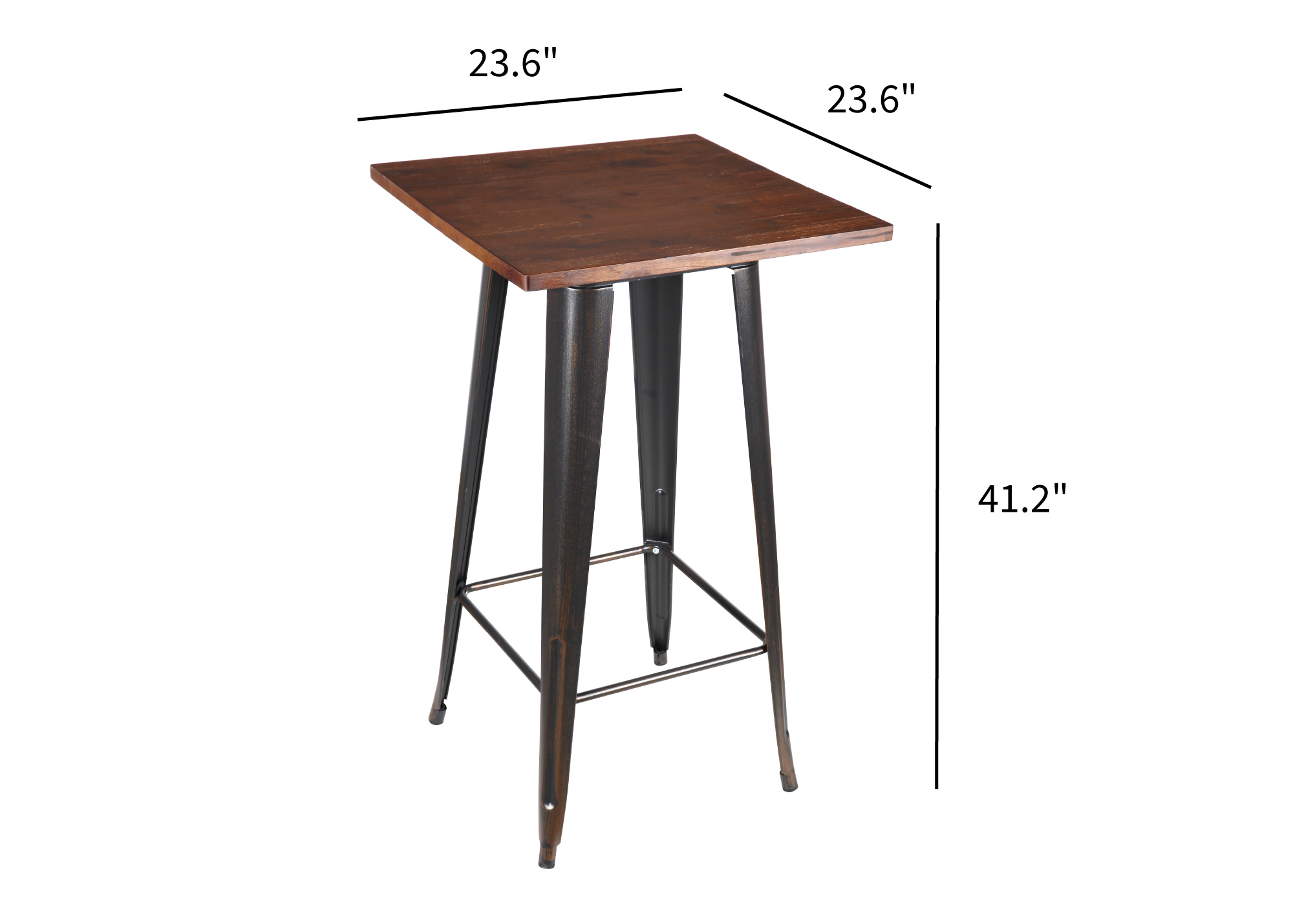 From an ultra-modern loft space to a contemporary country kitchen, this square bar table can fit with any style. The combination of the warm elm wood table top and sturdy, angular, powder-coated steel legs give this table a rustic and industrial design with an antique feel. Antique black or white finishes will seamlessly blend into any décor aesthetic. No-mark feet keep it from sliding or scratching hardwood floors.