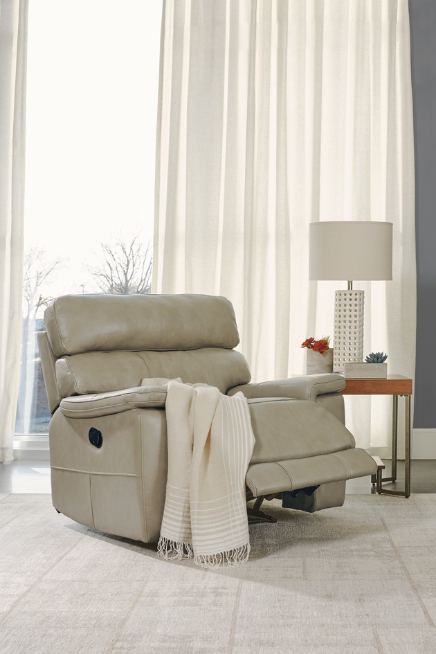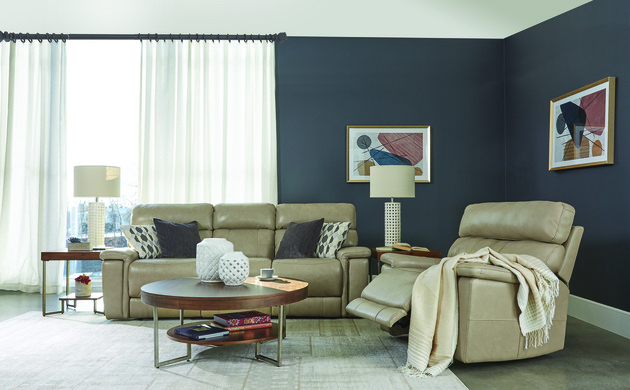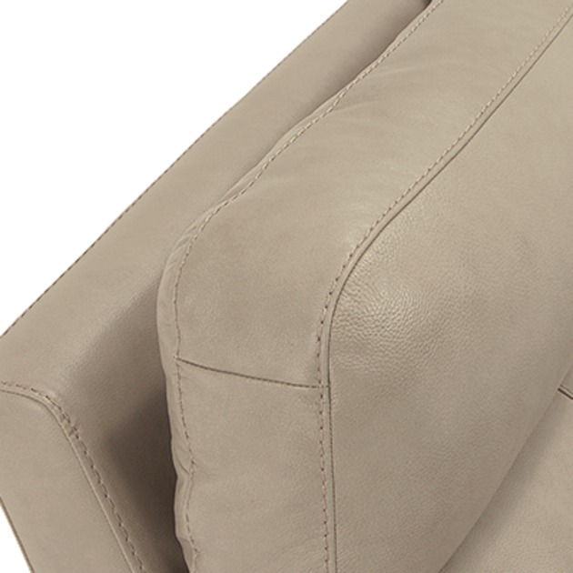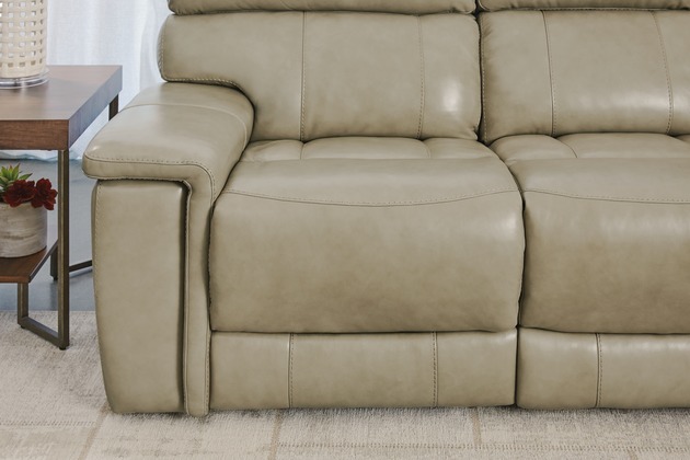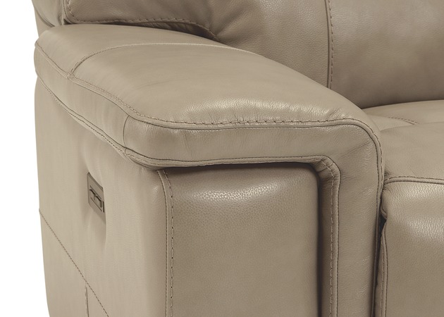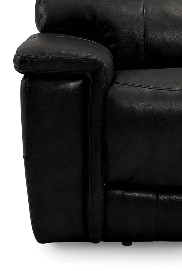 The Powell is defined by elegant transitional styling and inviting comfort. T-shaped back cushions are accented by a topstitch detail. Blown-fibre back cushions, foam seating and a pillow-top pad-over-arm will envelop you in softness. Power headrest and recline will smoothly transport you to the perfect position for relaxing after a long day, while a full pad-over-chaise footrest completely supports your legs and feet. Available in Onyx or Putty leather match upholstery and as a sofa, loveseat, recliner or console recliner, the Powell will create a strong and appealing presence in any room.