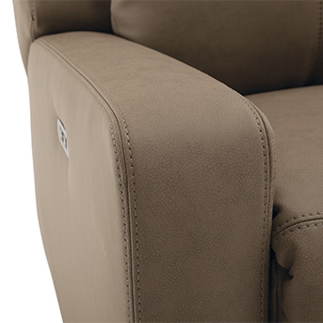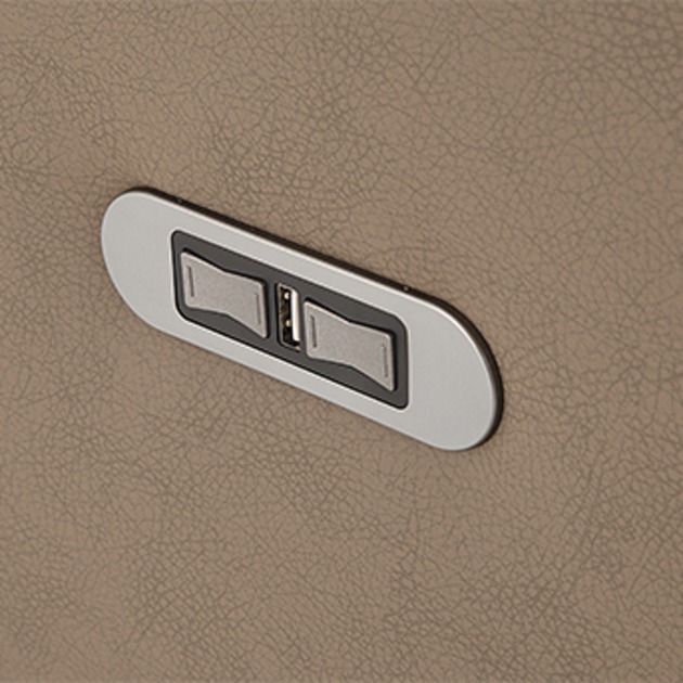 The Redwood features a power recline function with a power headrest, which enables personalized comfort regardless of height. The power activation mechanism includes a handy USB charging port for your convenience. The available central console integrates an optional table, tablet holder, cupholder, or LED cupholder accessories.