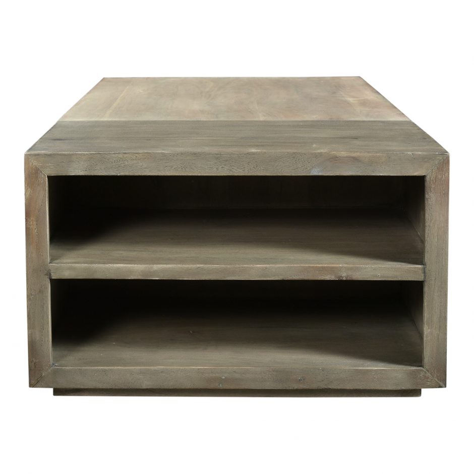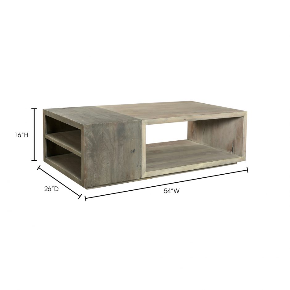 The Timtam Coffee Table features a plethora of storage options to keep your living room clean and organized. Made from solid acacia wood, the piece features a light cloudy and metal grey finish, giving it depth within its space. Truly another fine example of cubism aesthetic.