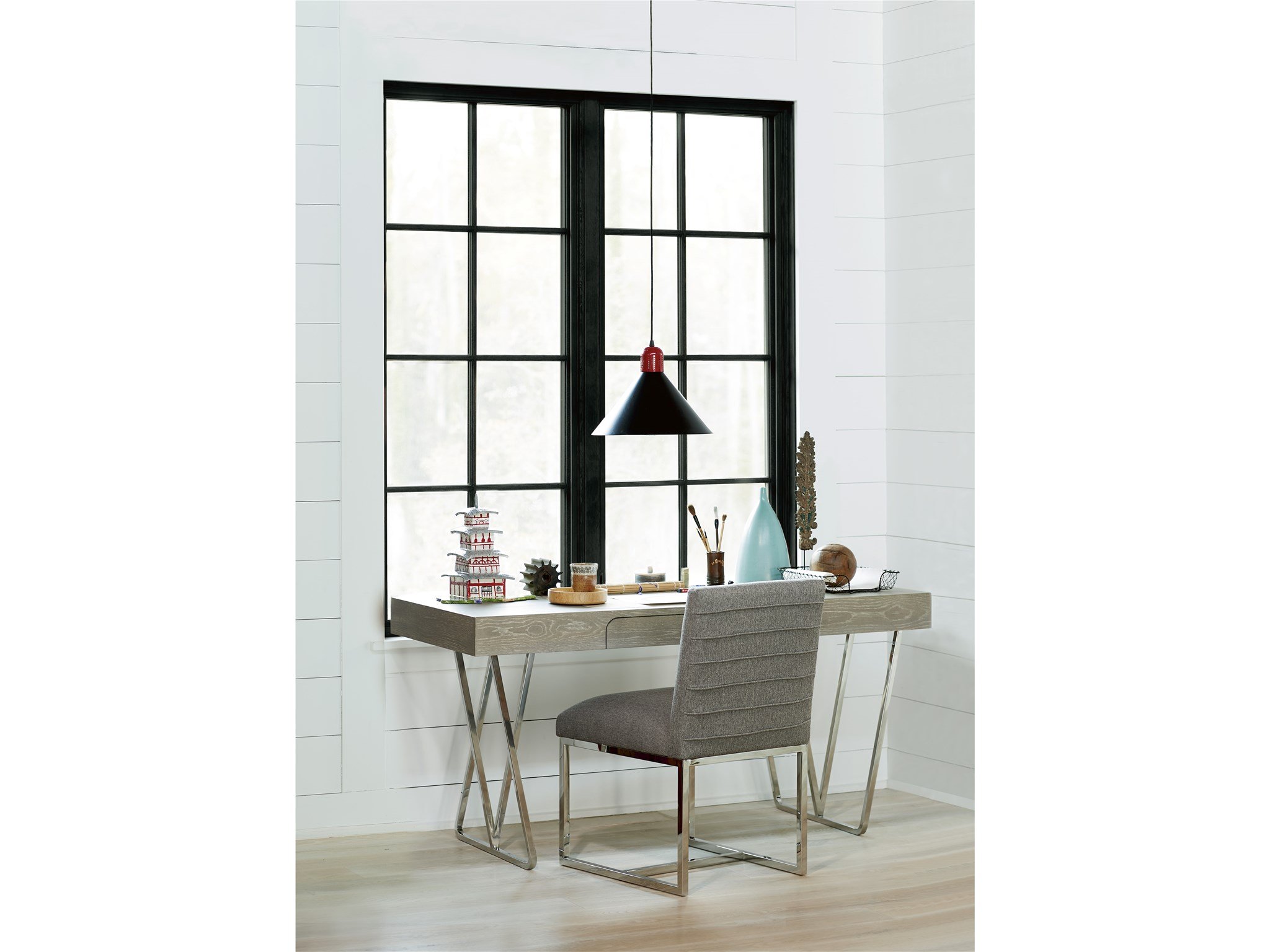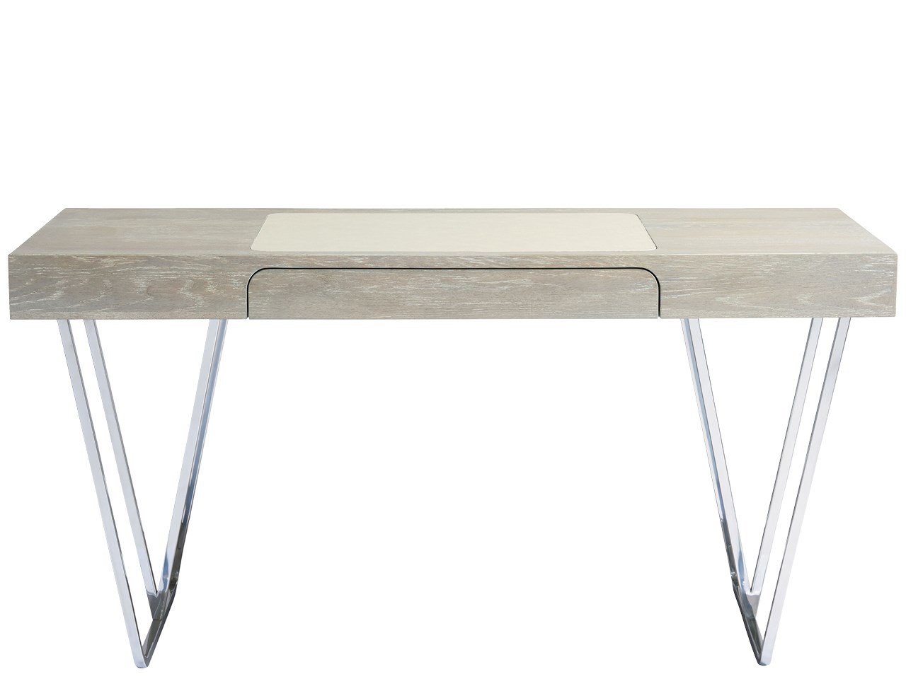 Add undeniable enthusiasm to your home office with the Zephyr Writing Desk, designed with angular chrome legs and perfected with a faux leather inset on top.