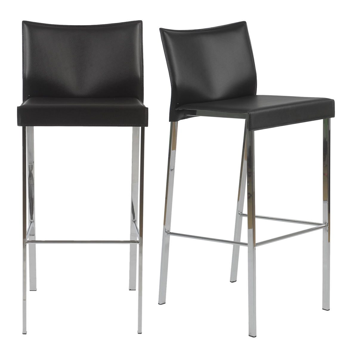 Riley-B Bar Stool in Black with Chrome Legs – Set of 2