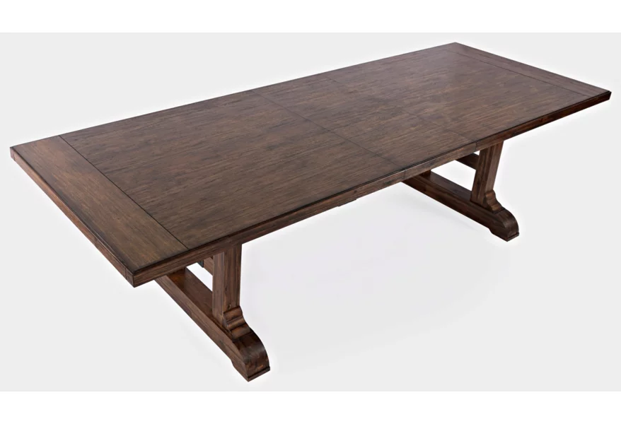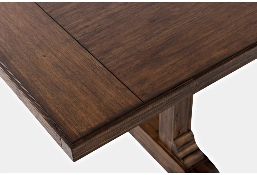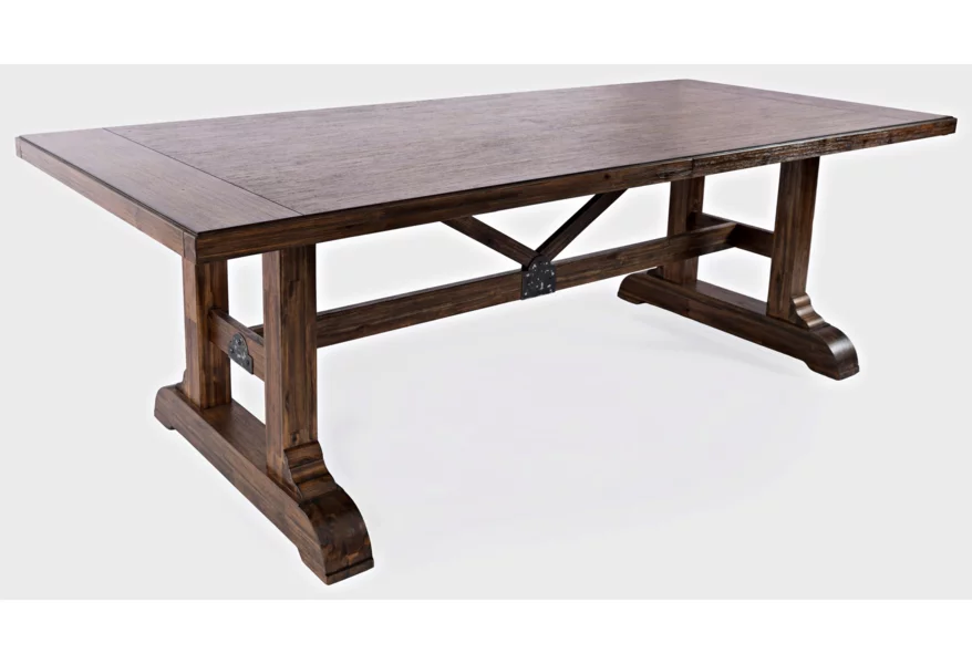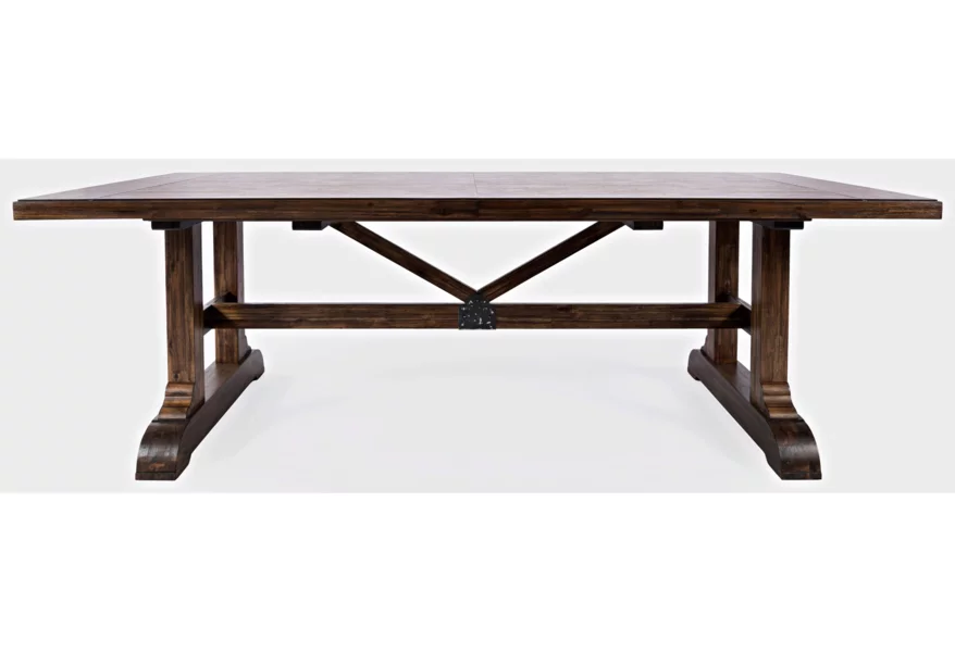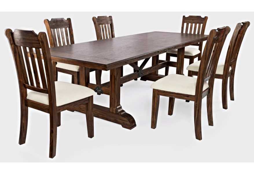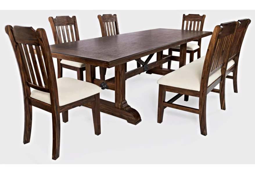 Centered around the attention grabbing table, with a trestle bar with two angled supports and metal detailing, the Bakersfield Collection is simply stunning. Available with chairs and an optional bench with upholstered seats in a neutral cream and finished in a rich dark colorway, this dining set with matching server and hutch will turn any dining room into a grand space.