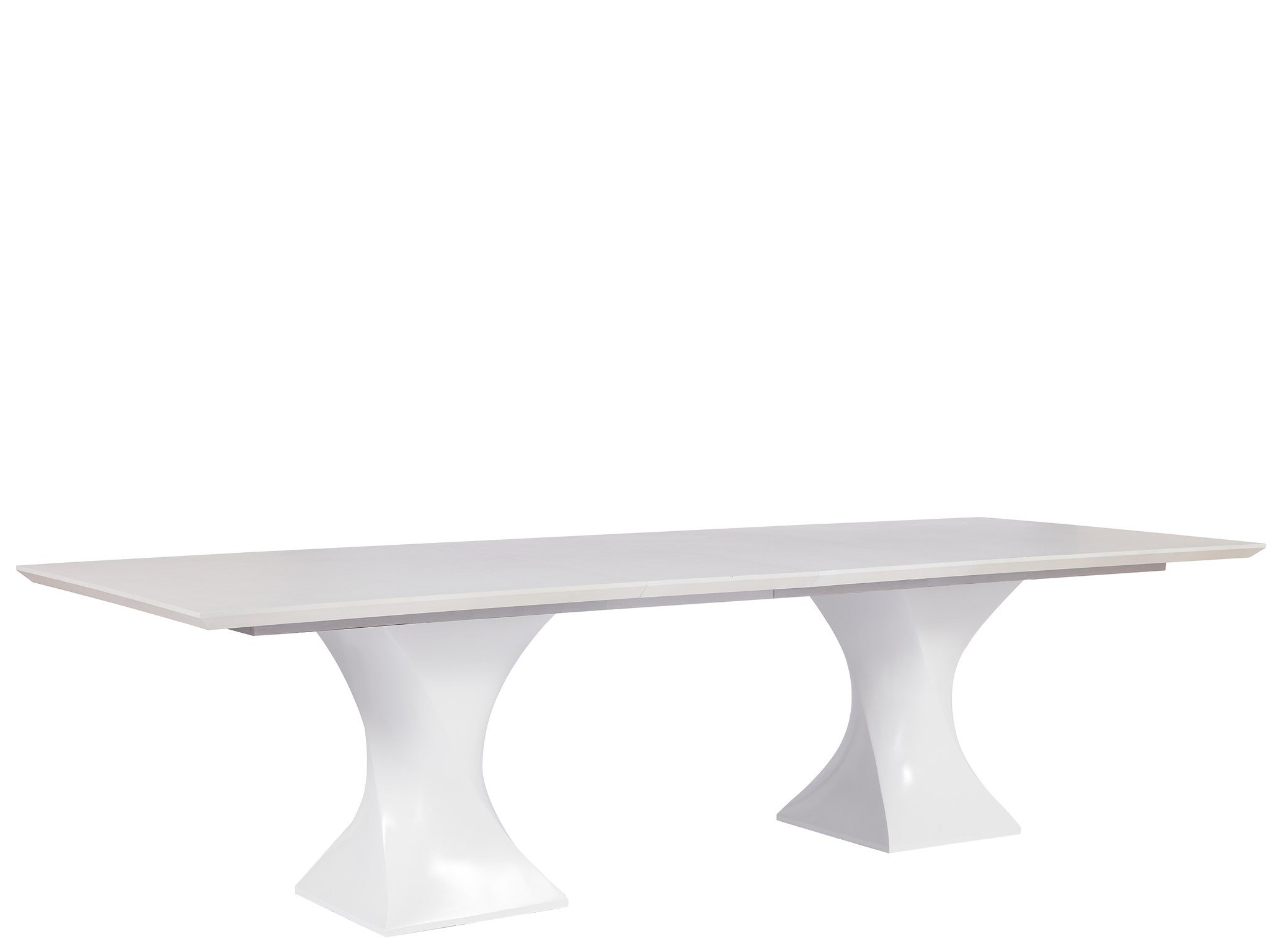 The Brisbane Pedestal Table introduces a polished decadence to spaces with a rectangular top in an Alabaster finish and two geometric-style bases in a white lacquer finish.