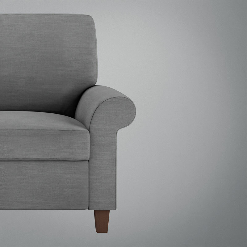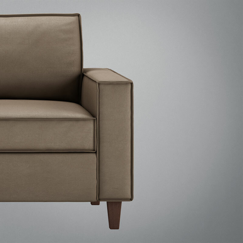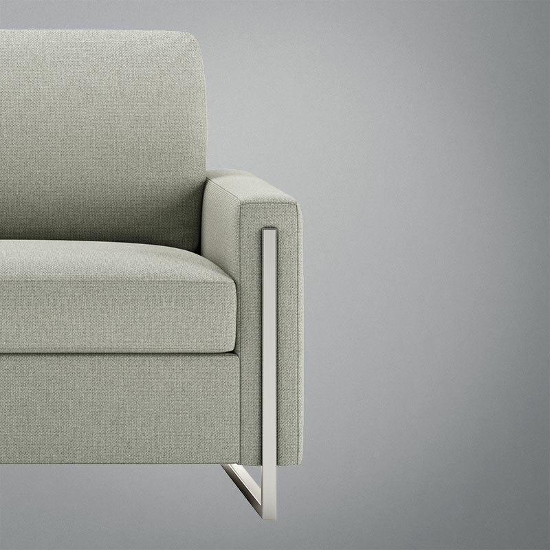 Bryson’s beautiful track arms and flawless tailoring are highlighted by double-needle top-stitching and gorgeous sculpted legs.