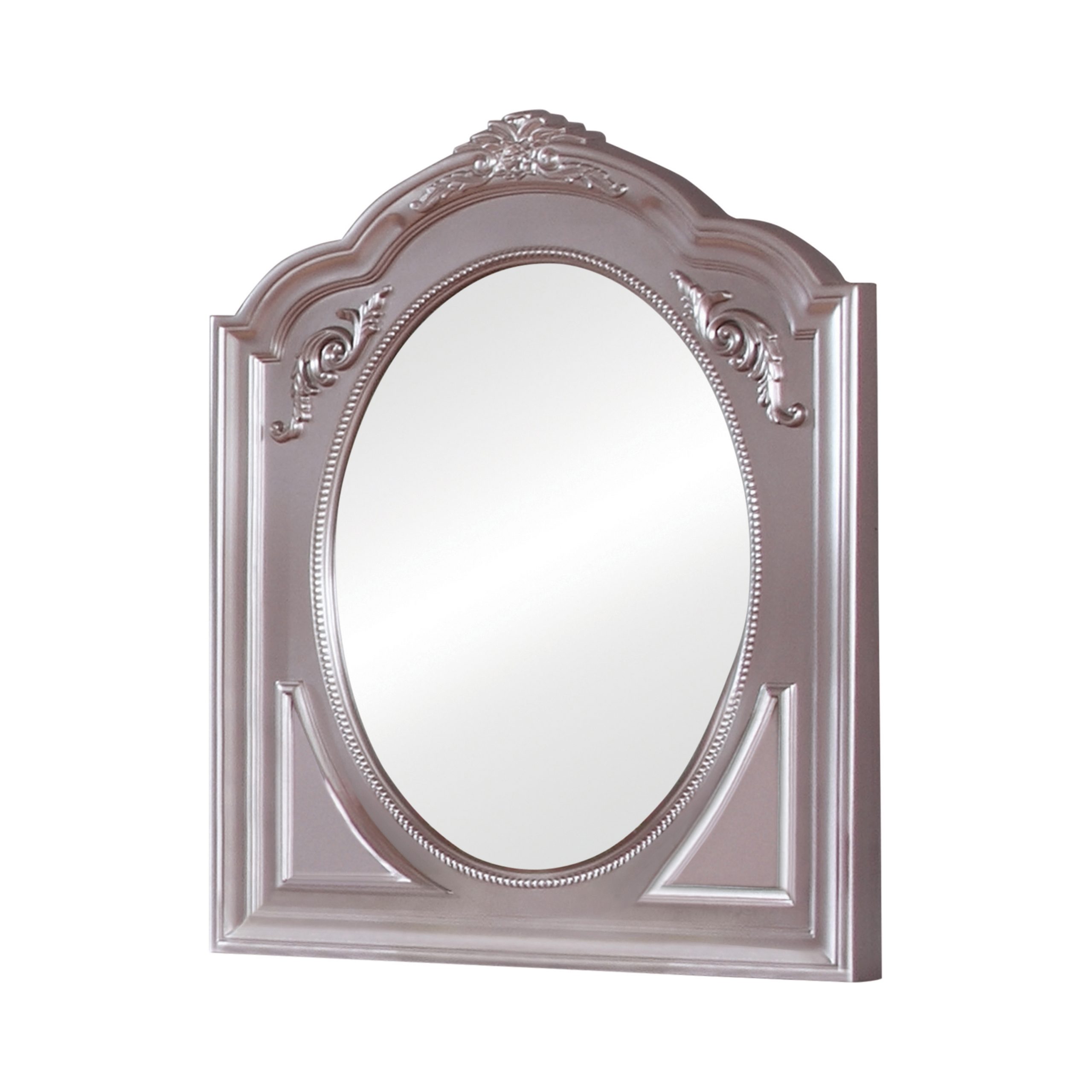 Full of luxurious details, this stylish panel bed creates a beautiful visual in any space. Soft yet radiant, the frame features a glamorous metallic lilac finish. The upholstered headboard is complete with button-tufting and rhinestone accents. Perfect for the budding fashionista, the curved shape of the headboard contrasts against elongated, streamlined details. Decorative carvings along the bright legs offer a finish feel to the plush and ornate.