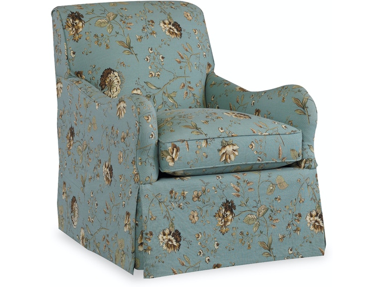This swivel glider comes standard with a waterfall skirt; classic seat cushion and welt trim only. Go for a spin in our wide selection of swivel chairs. Multifunctional to their core and beautiful from every angle, these space-saving pieces are ideal for creating a conversation area in a living room or casual family room. With styles ranging from traditional to modern, their fresh designs are sure to keep the conversation moving.