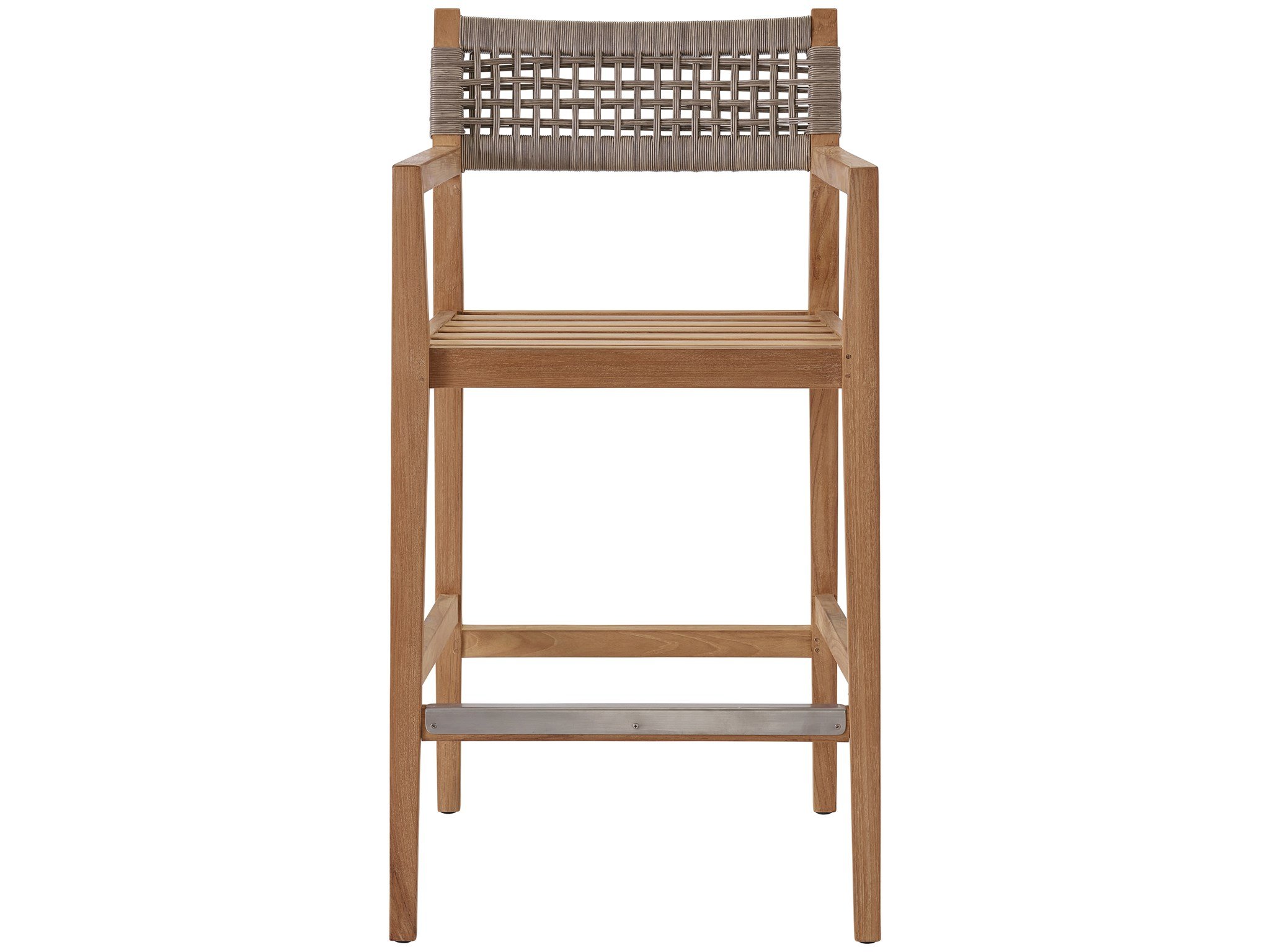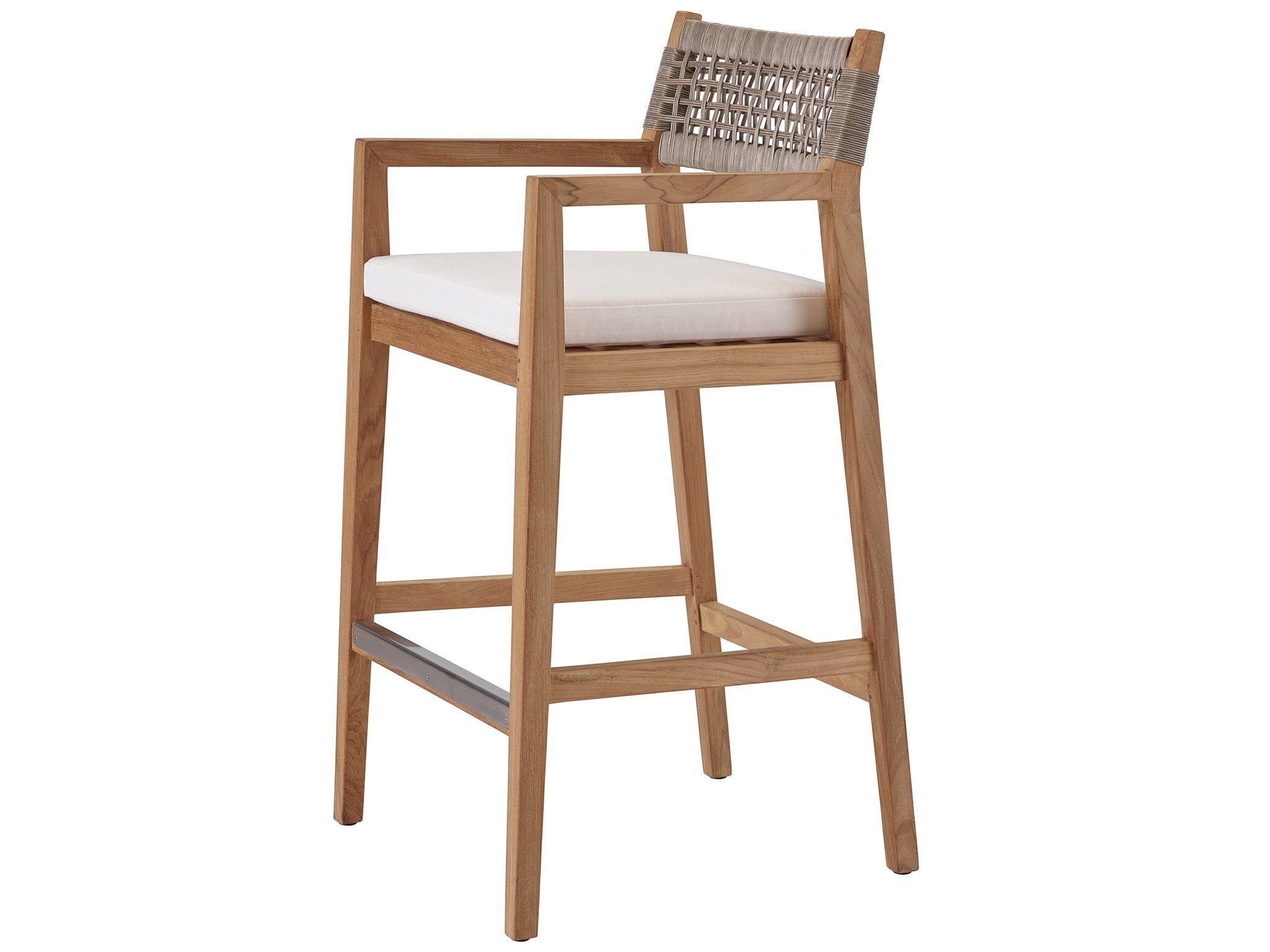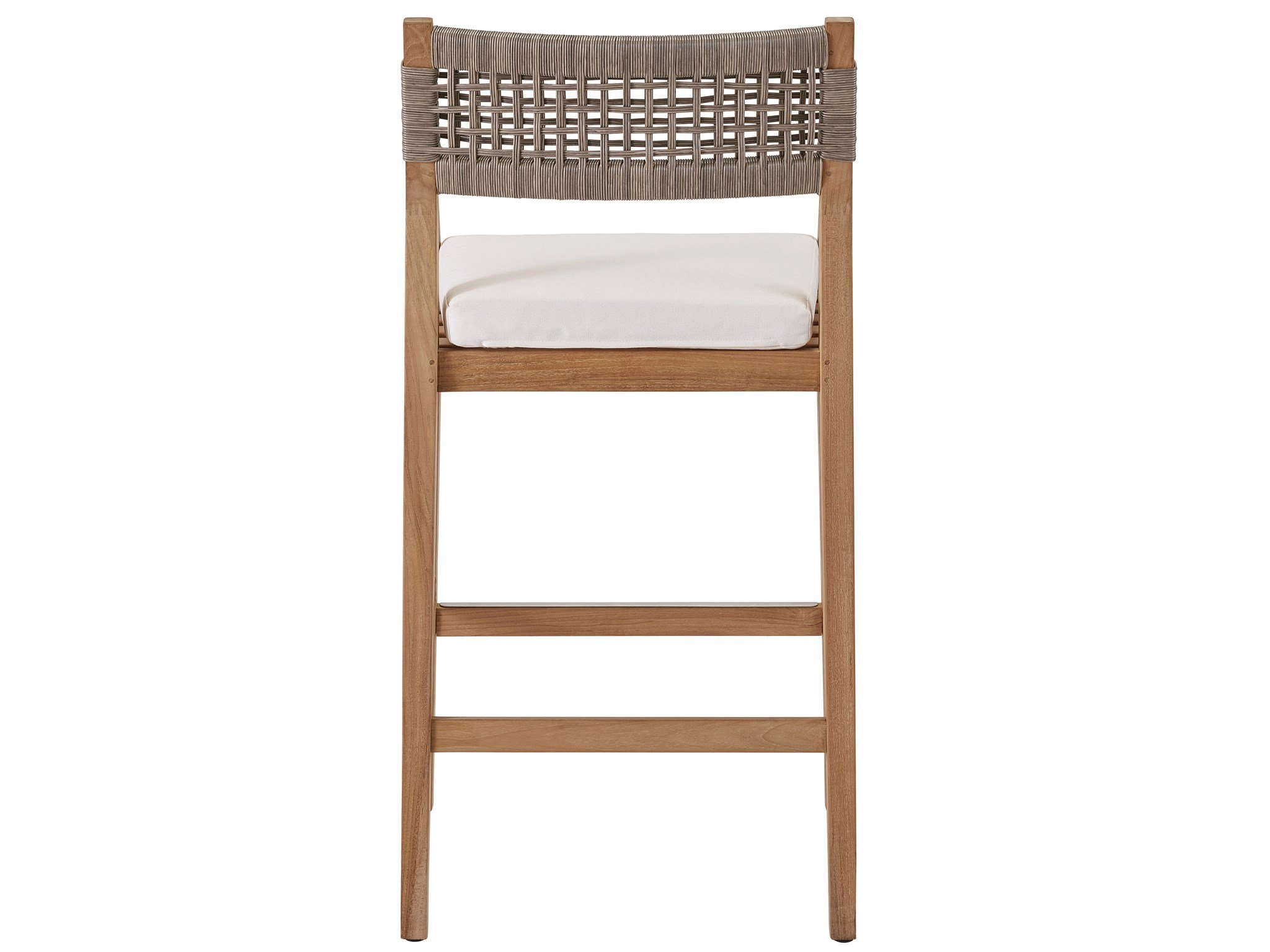 The perfect accompaniment to any outdoor bar or countertop, the Chesapeake Bar Stool features an upholstered cushion and striking wicker accents on the back for added texture.