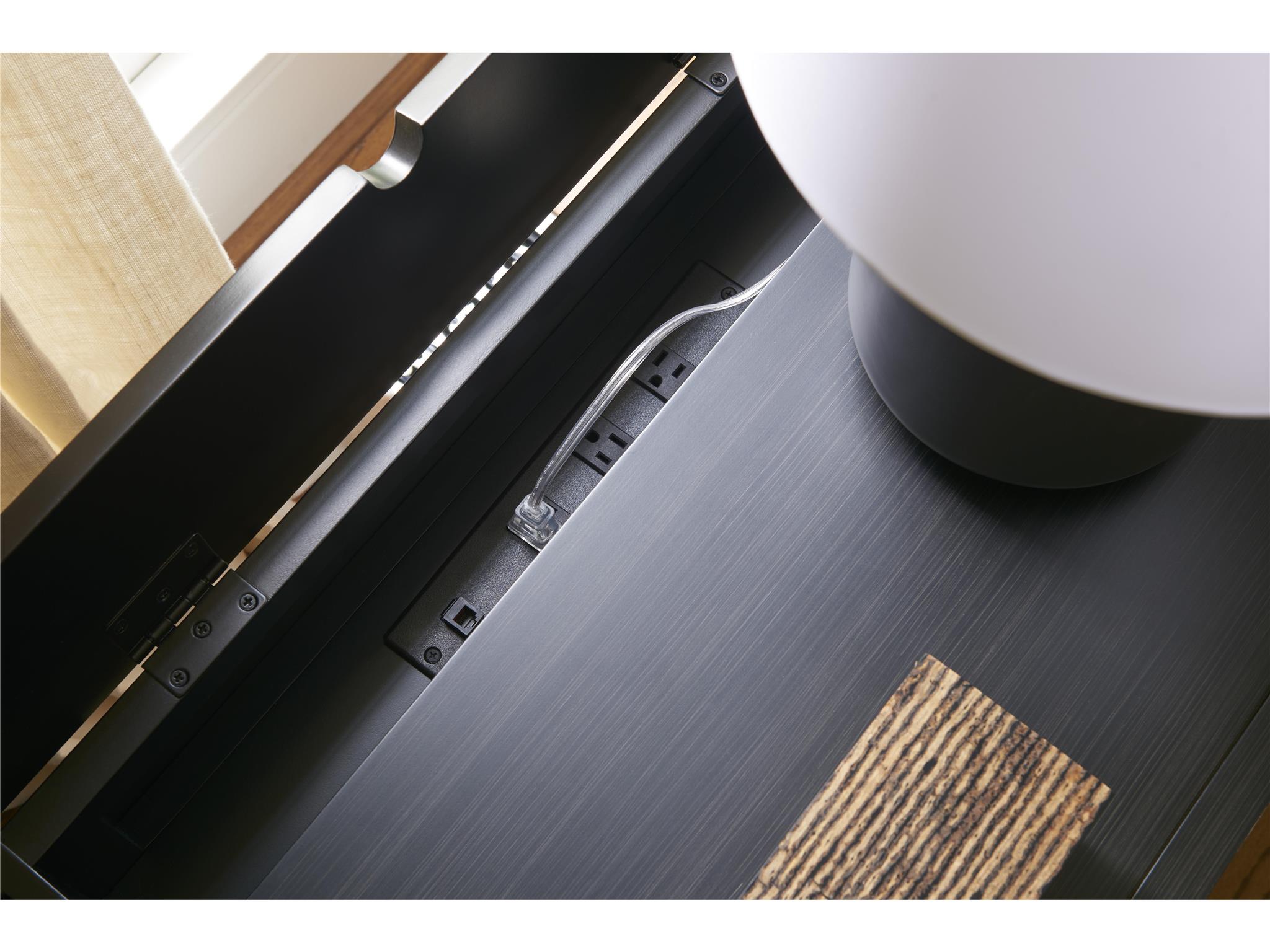 The Spencer Nightstand not only adds interest with its striking two-toned finish, but it also comes outfitted with a conveniently hidden power outlet underneath its top lid.