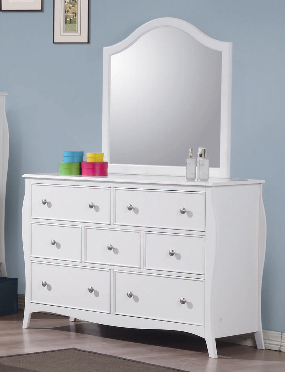 A mirror can add practicality or style to any bedroom. This accent piece from the Dominique collection is designed for both. It’s large enough to make sure you’re looking great from head to toe for any occasion. Frame is crafted with a curved top that adds taste and style. Mirror is an ideal match for the dresser in the same collection (not included).