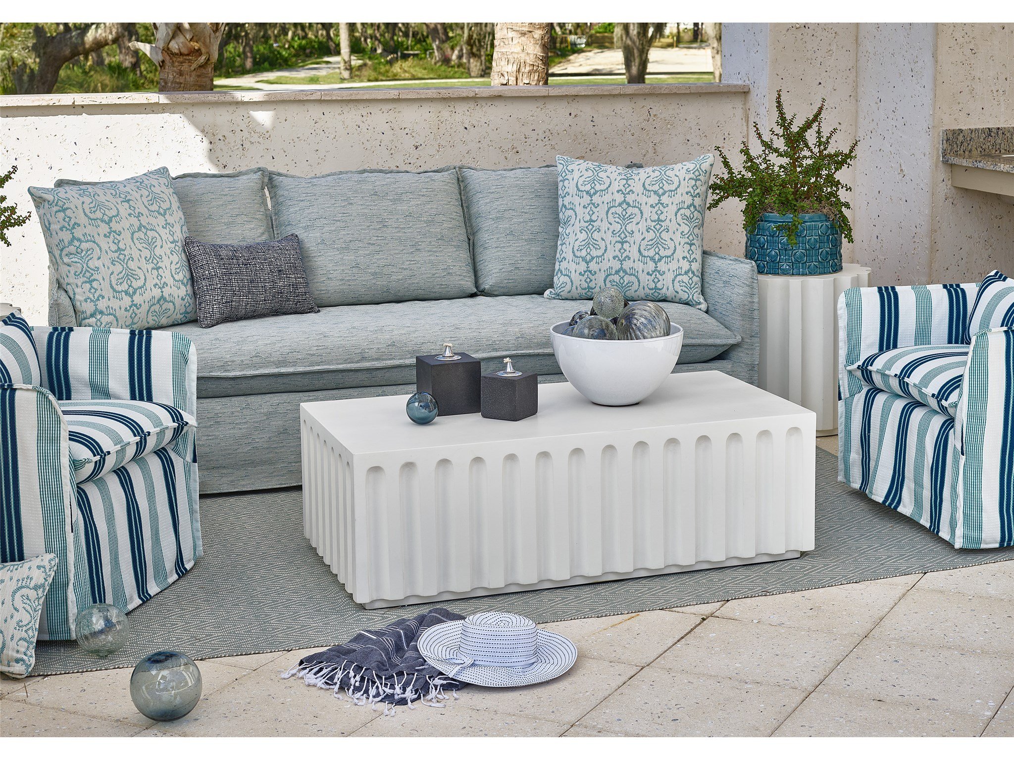 DETAILS Showcasing contemporary lines and a bright white hue, the Edisto Cocktail Table adds playful panache to outdoor spaces.