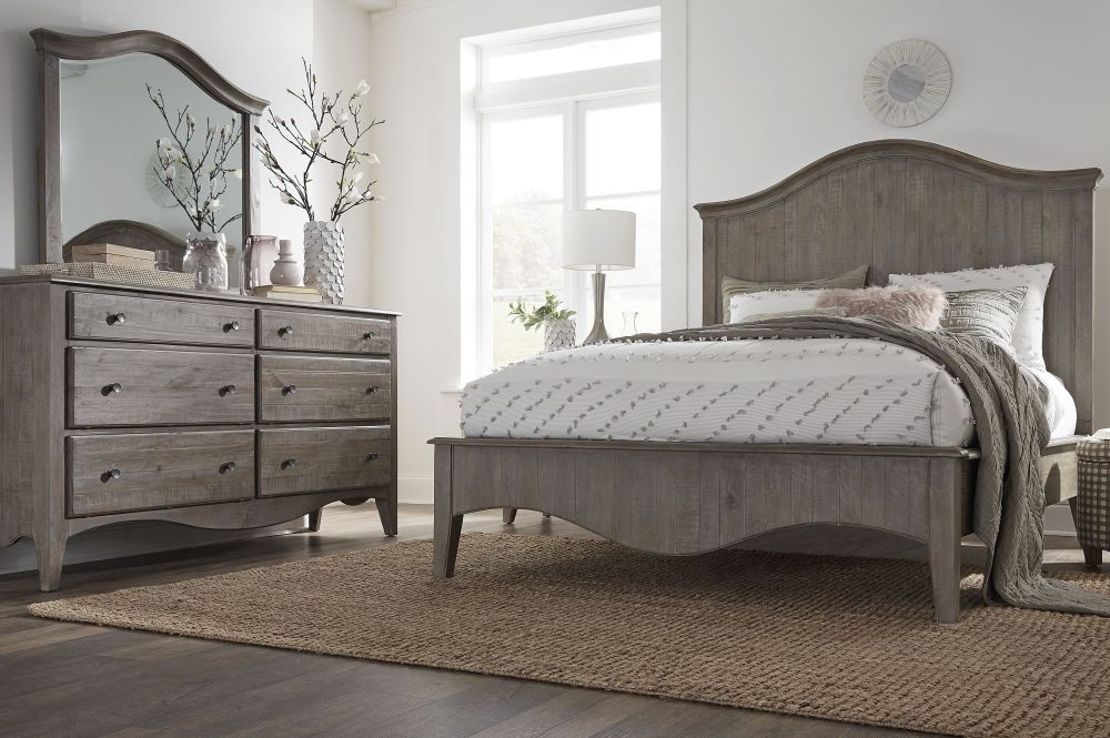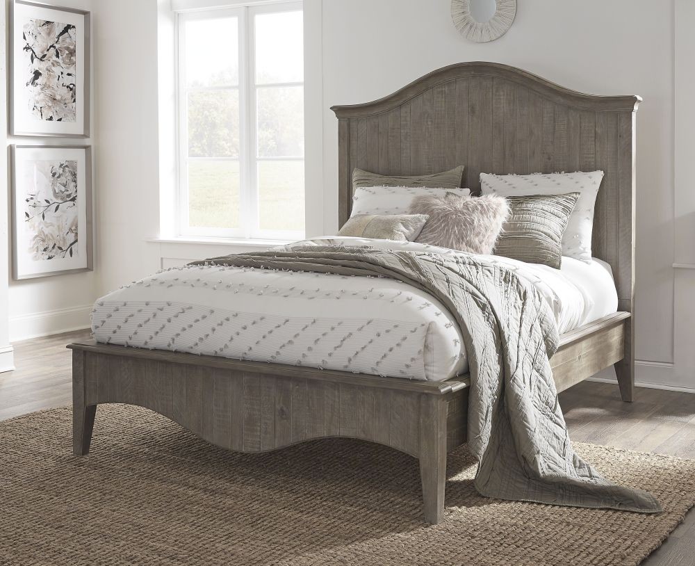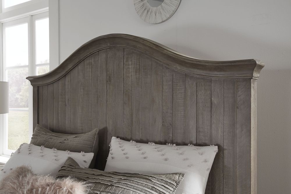 Rustic detail. With its chic, scalloped edges and weathered Camel finish, the Ella collection transforms the bedroom into a romantic retreat. Planks of solid wood feature unique texture, knot and grain patterns that boost the rustic appeal of each piece, while angled feet and contrasting oil rubbed bronze drawer pulls make an instant style statement.