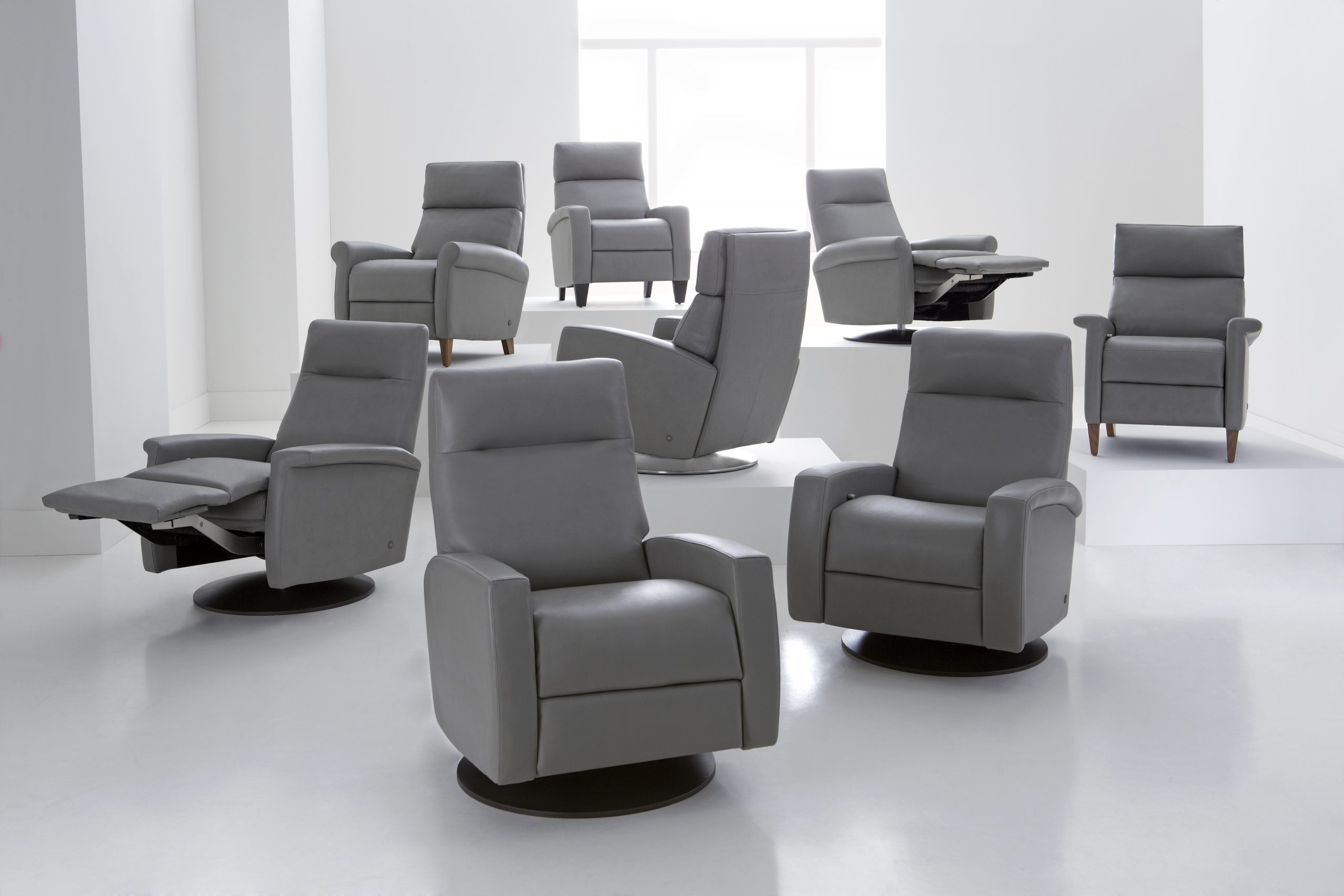 The back and footrest operate independently for ultimate comfort.â„¢Customize the Elliot by selecting a swivel base in Brushed Metal or a wood base in Natural Walnut or Grey Ash. Never choose between style and comfort when you can have both with the Elliot Comfort Recliner.