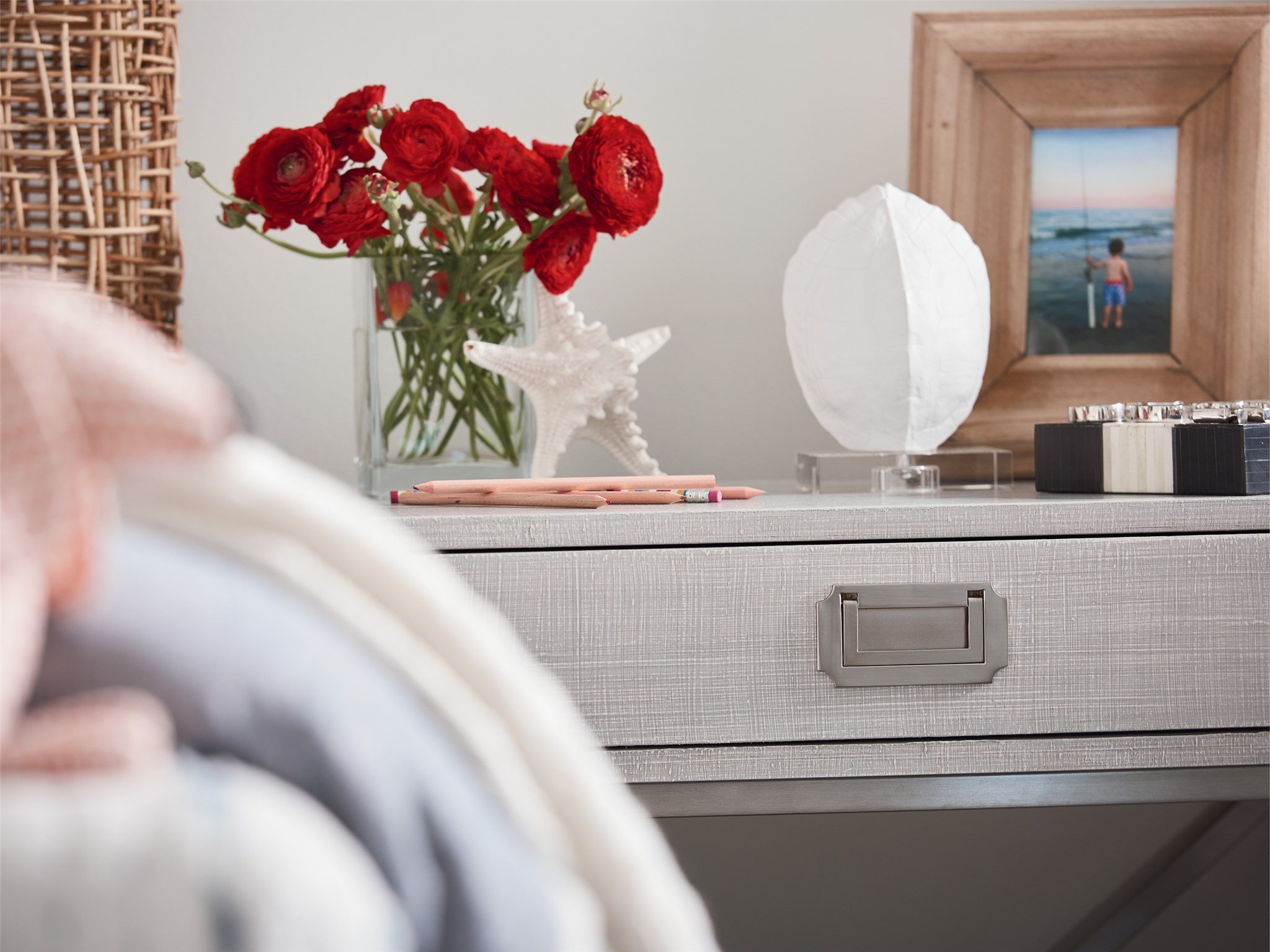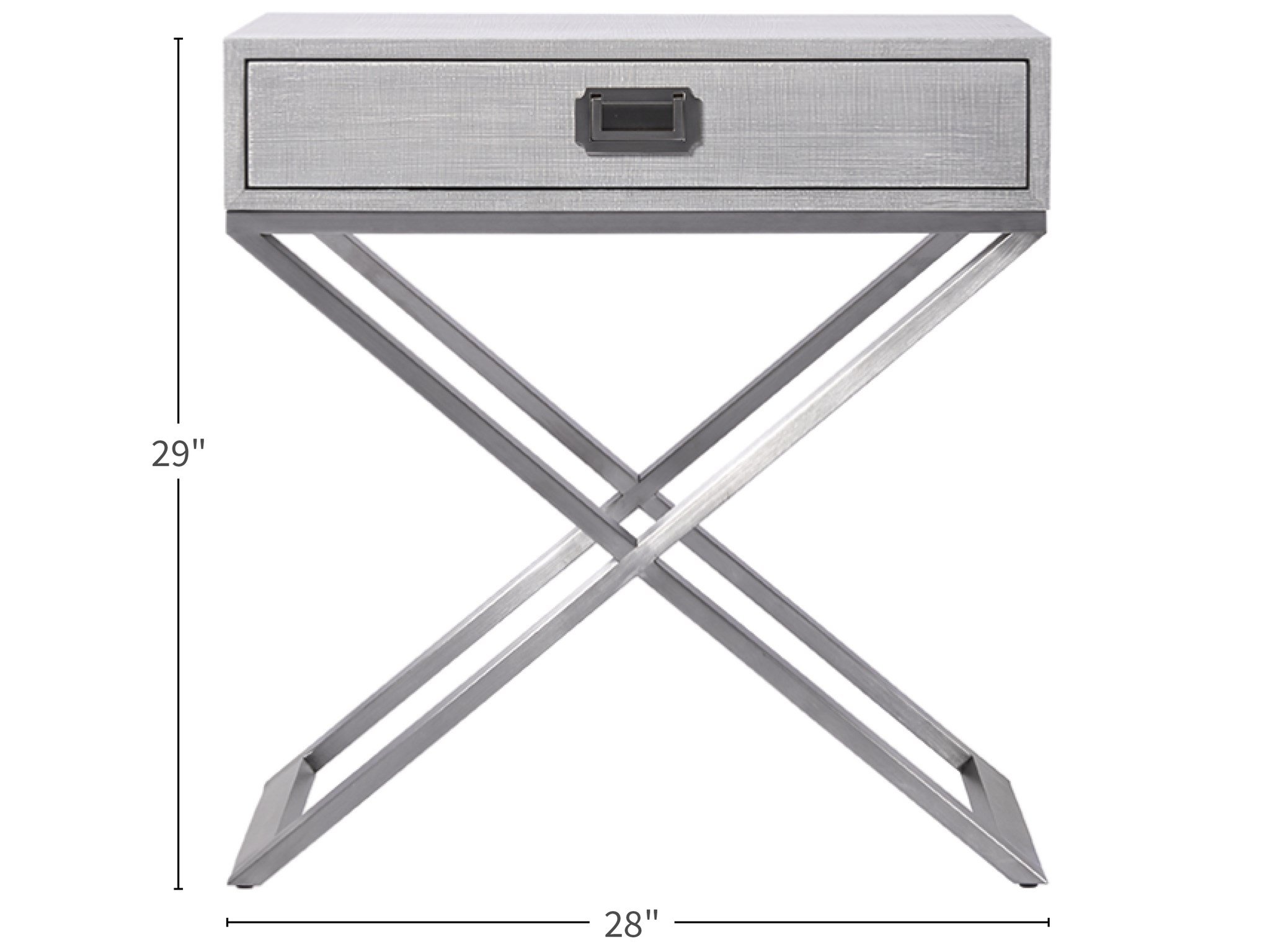 With an X-shaped base and a single vintage trunk-inspired drawer, the Escape Night Table boasts a casual chic elegance with a dash of modern flair.
