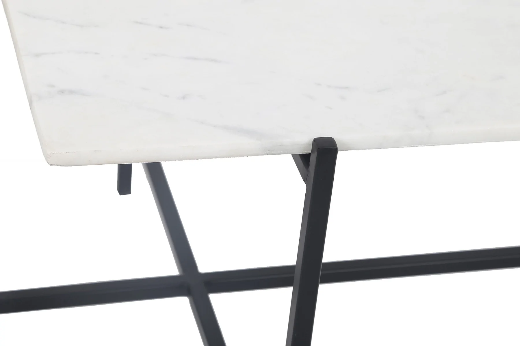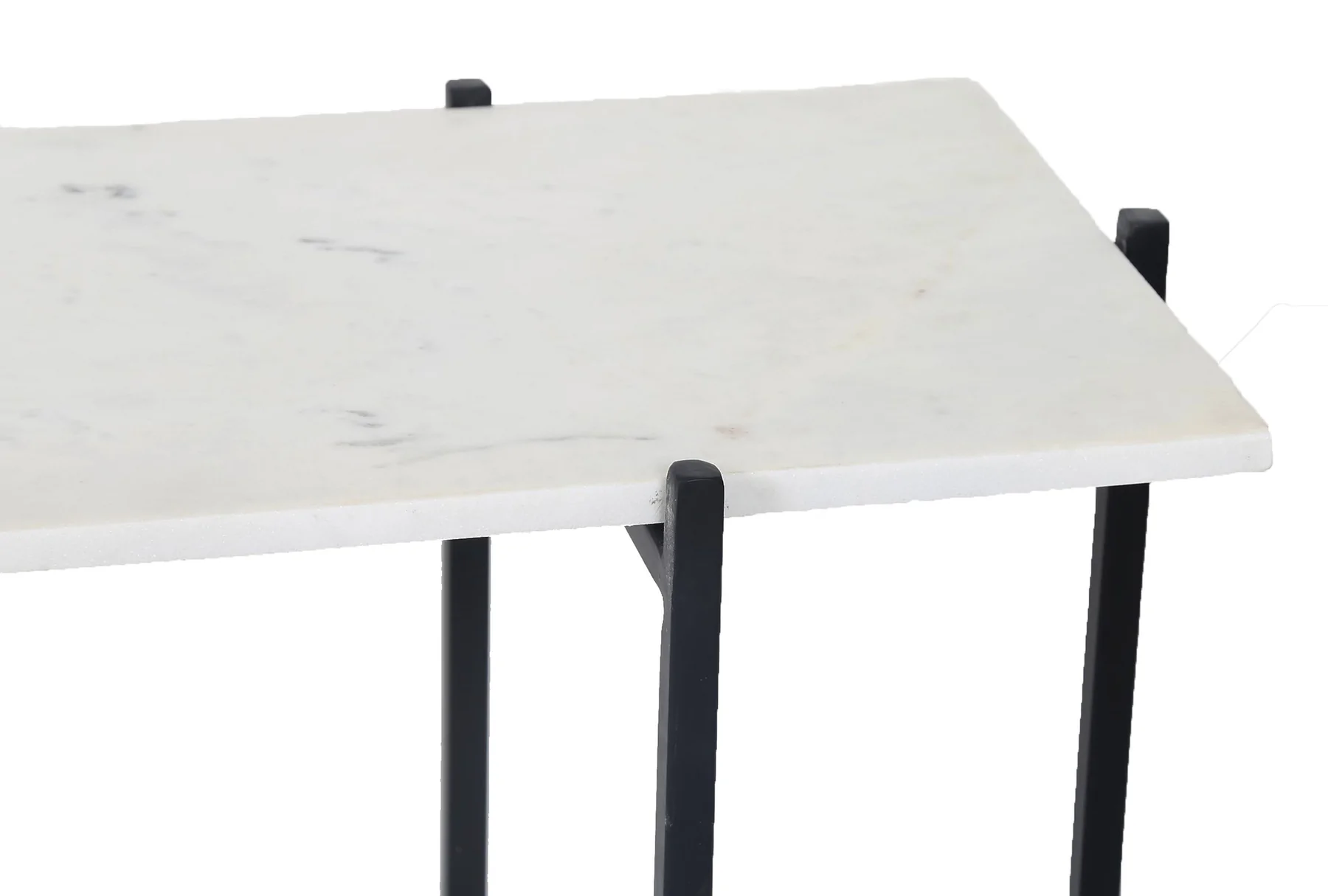- Engaging white marble and black iron legs give an art deco look