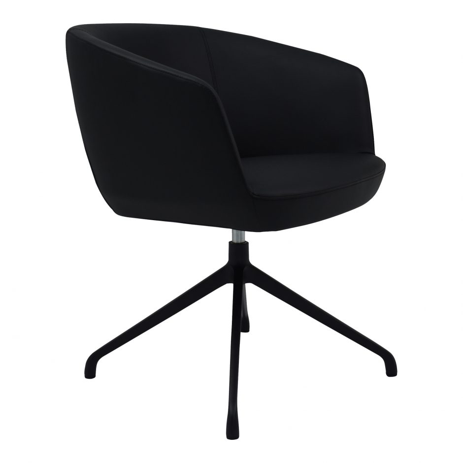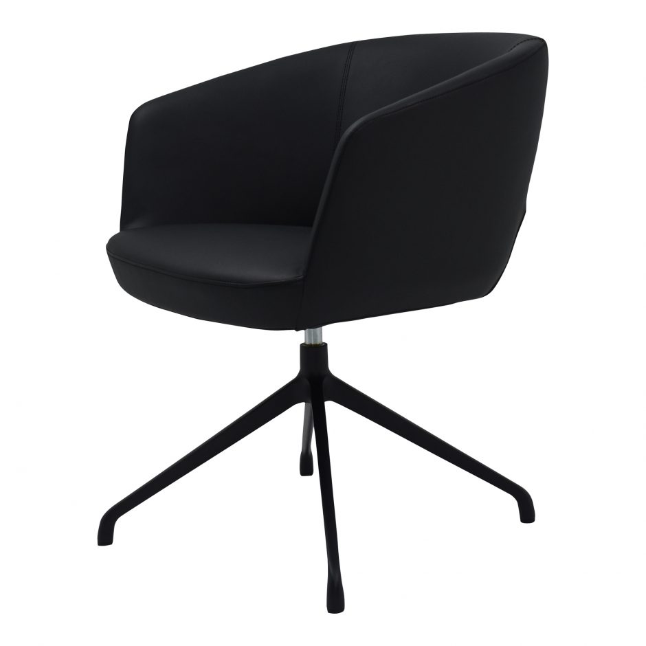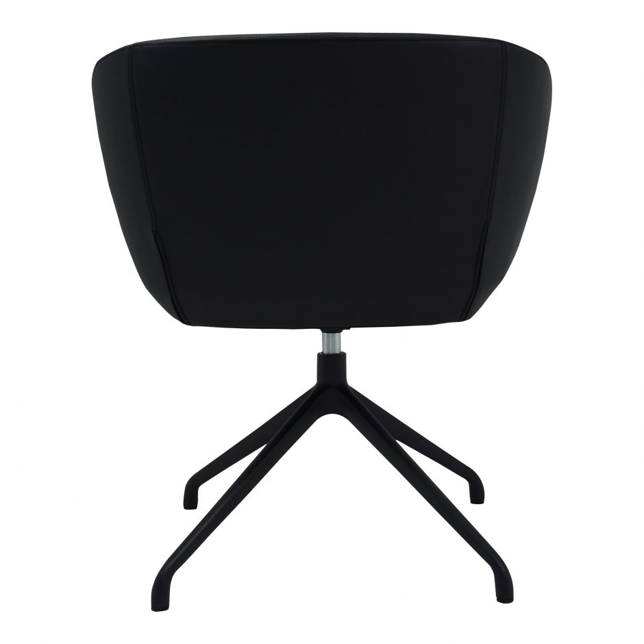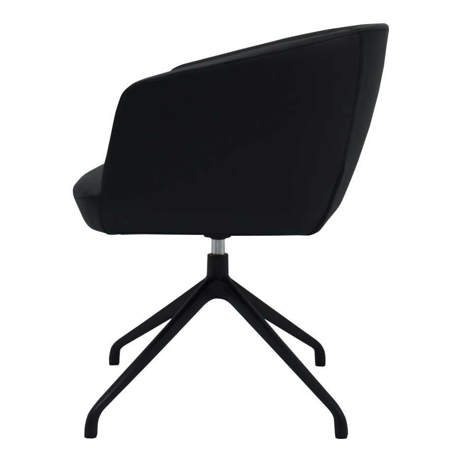 A seat you can feel confident in. The black Gibson occasional chair offers 360º worth of swivel, full back support, and plush upholstery. With its supportive aluminum base and vegan leather finish, its the perfect blend of comfort and style. Whether you’re working at the computer or maybe having an end of day cocktail, the Gibson is the ultimate command chair.