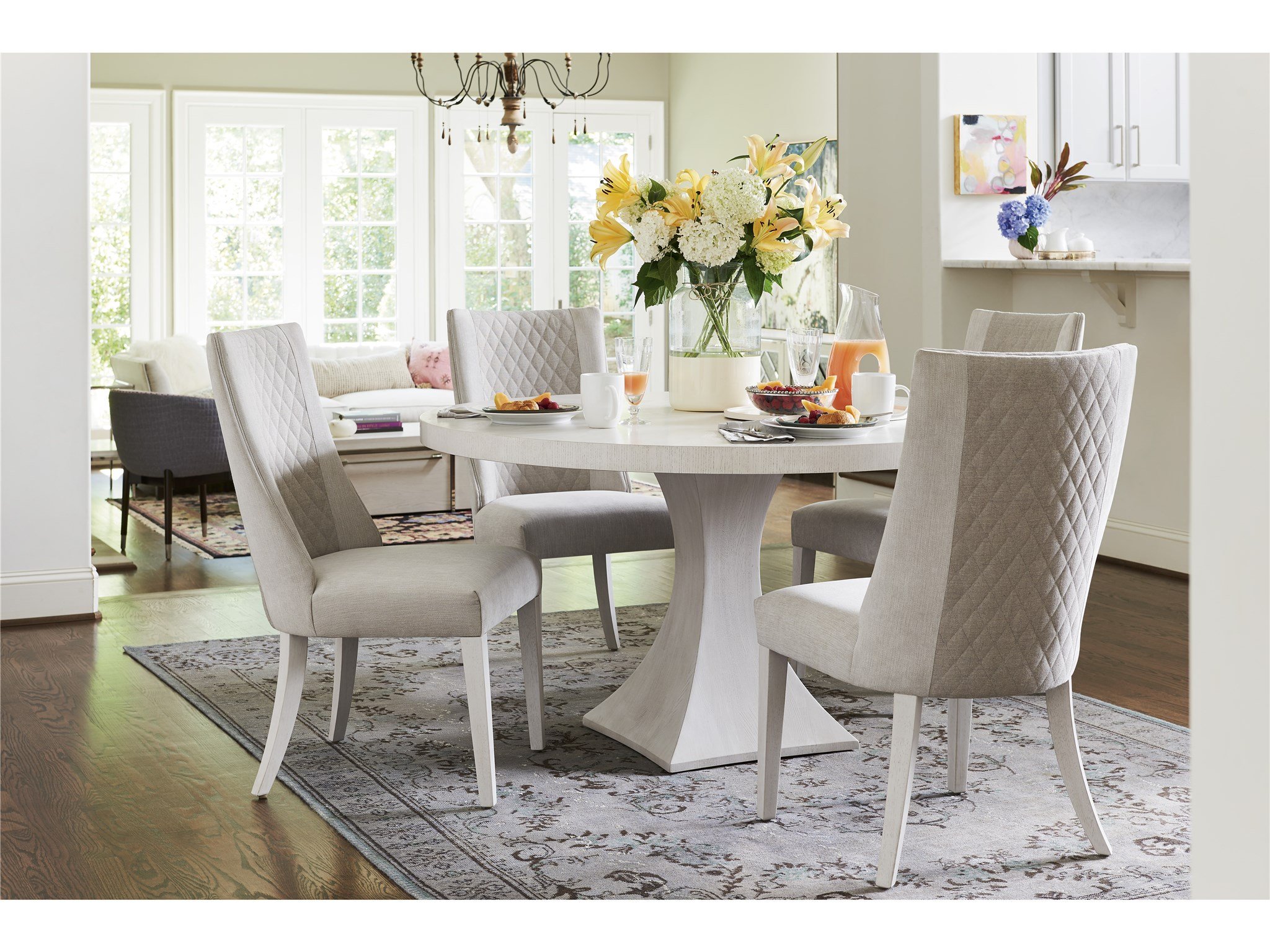 DETAILS The Integrity Dining Table combines a perfectly rounded top perched above a uniquely abstract base, forming an aesthetically beautiful statement piece.