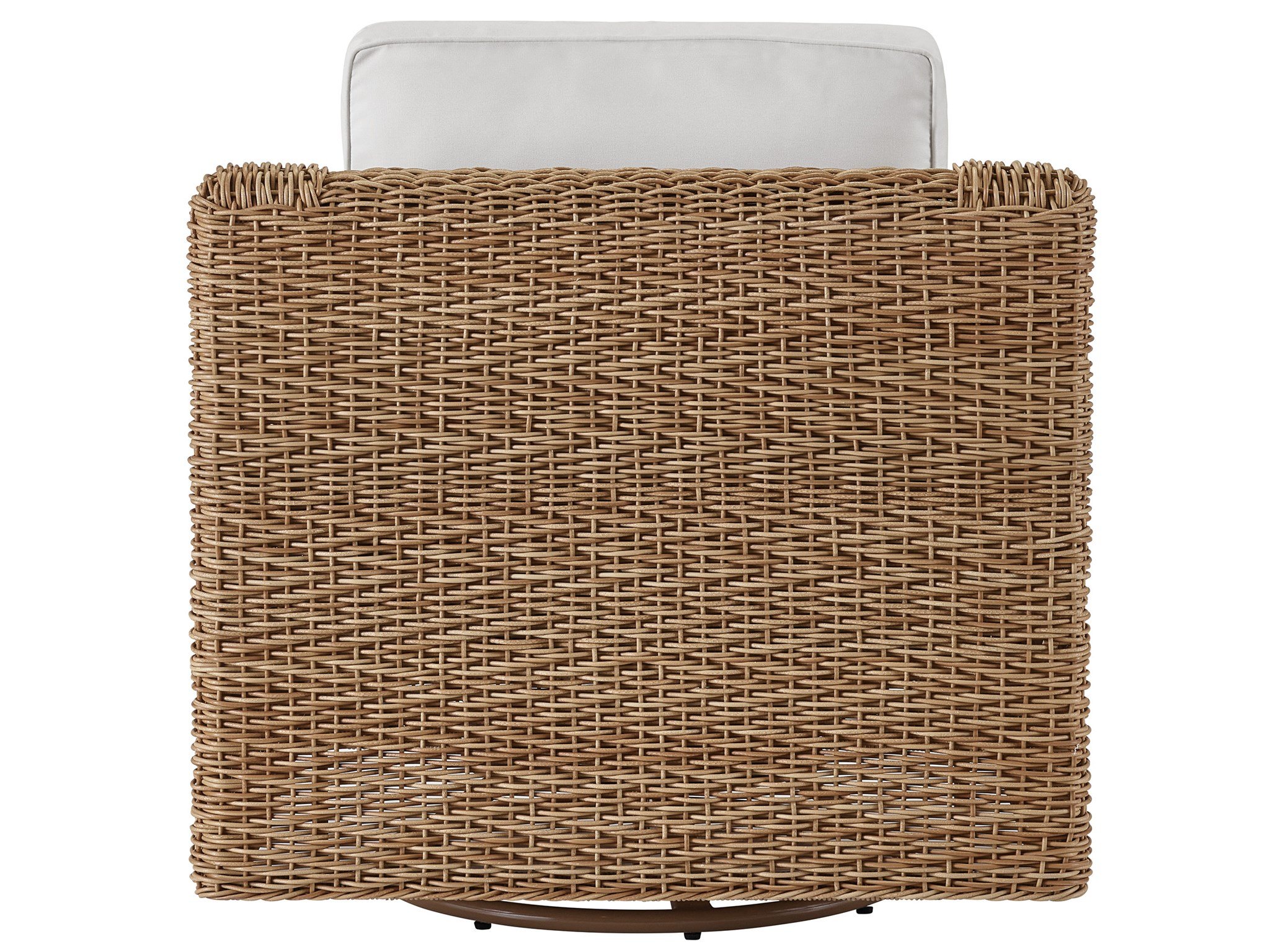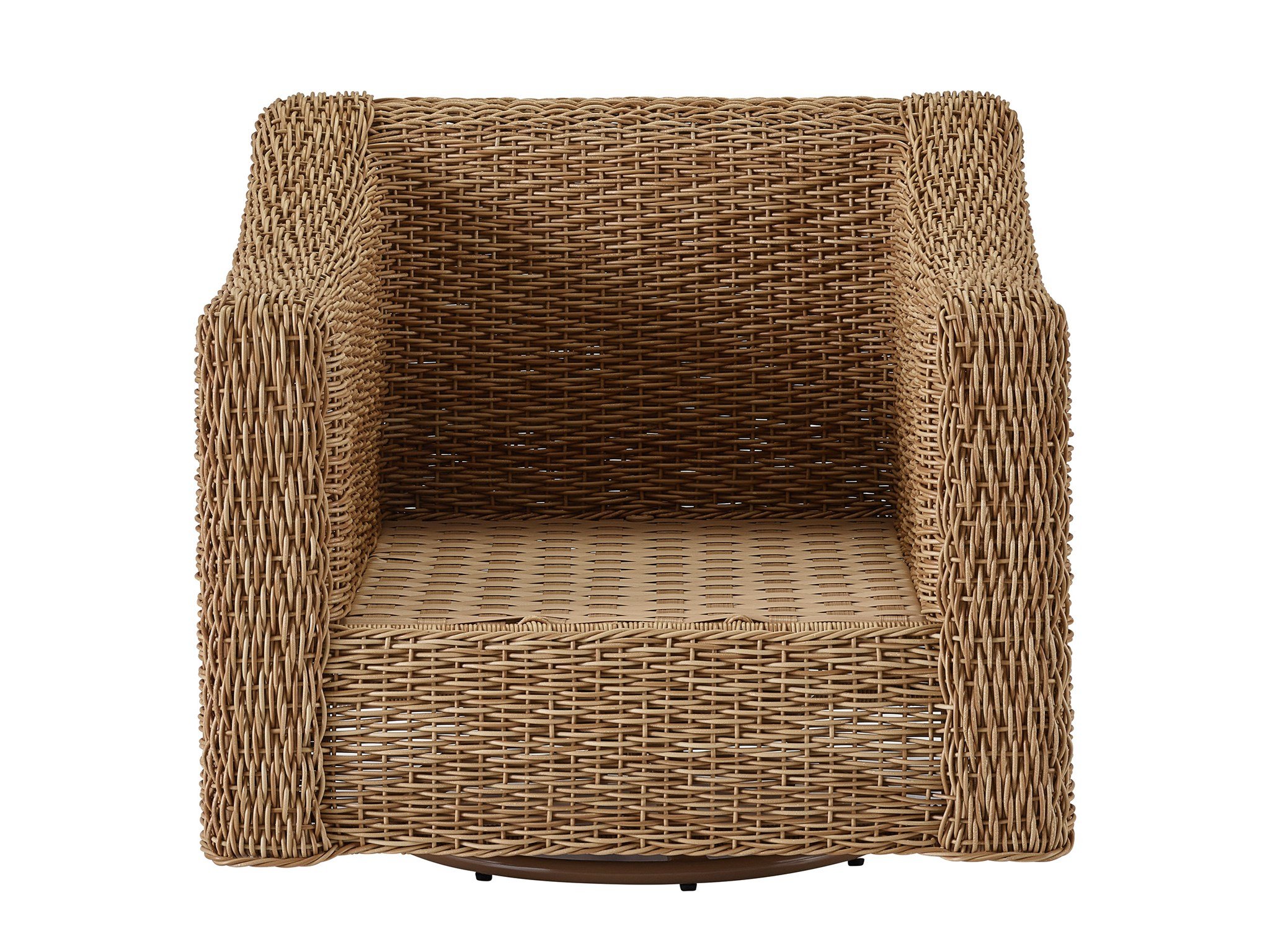 Built atop a convenient swivel base, the Laconia Swivel Chair offers versatility and style in one, featuring lush neutral cushions encased within an intricately woven wicker frame.
