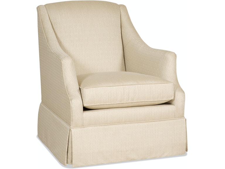 This skirted swivel glider comes standard with a classic seat cushion and welt trim. Lark is also available as a non-skirted club chair as style no. 1754 and as a swivel chair as style no. 1756. Go for a spin in our wide selection of swivel chairs. Multifunctional to their core and beautiful from every angle, these space-saving pieces are ideal for creating a conversation area in a living room or casual family room. With styles ranging from traditional to modern, their fresh designs are sure to keep the conversation moving.