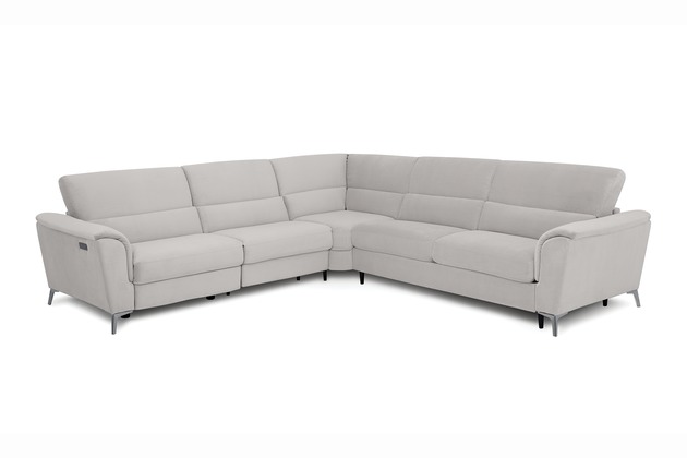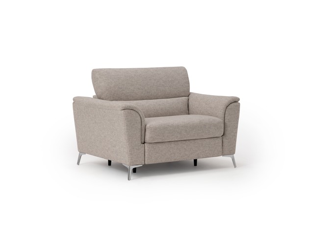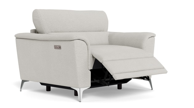 Power recline with a button switch featuring integrated USB charging, finished in an attractive brushed metal