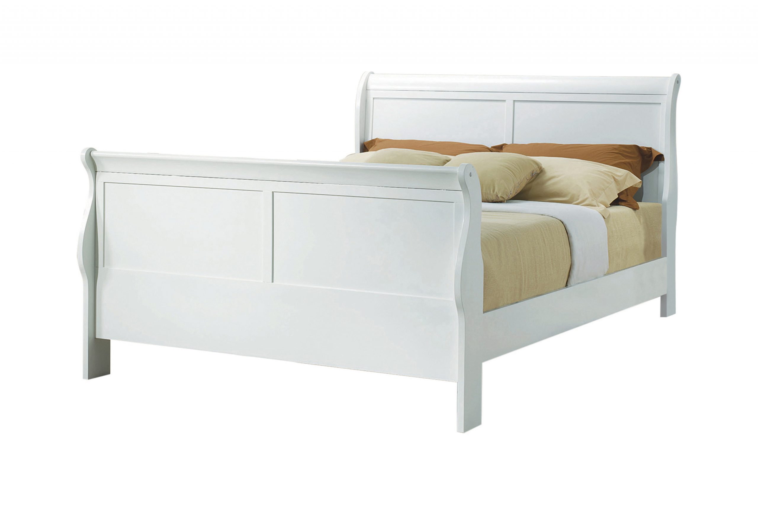 Featuring clean lines, this wood full size bed looks great in a modern space. In a crisp white finish, elongated and beveled edges are enhanced. Celebrate classic louis Philippe style with matching footboard and slightly higher headboard. Interesting curves and a modern hue give this bed a stylish look. Add a charming touch with the subtle curves connecting the legs to the footboard.