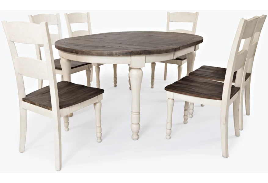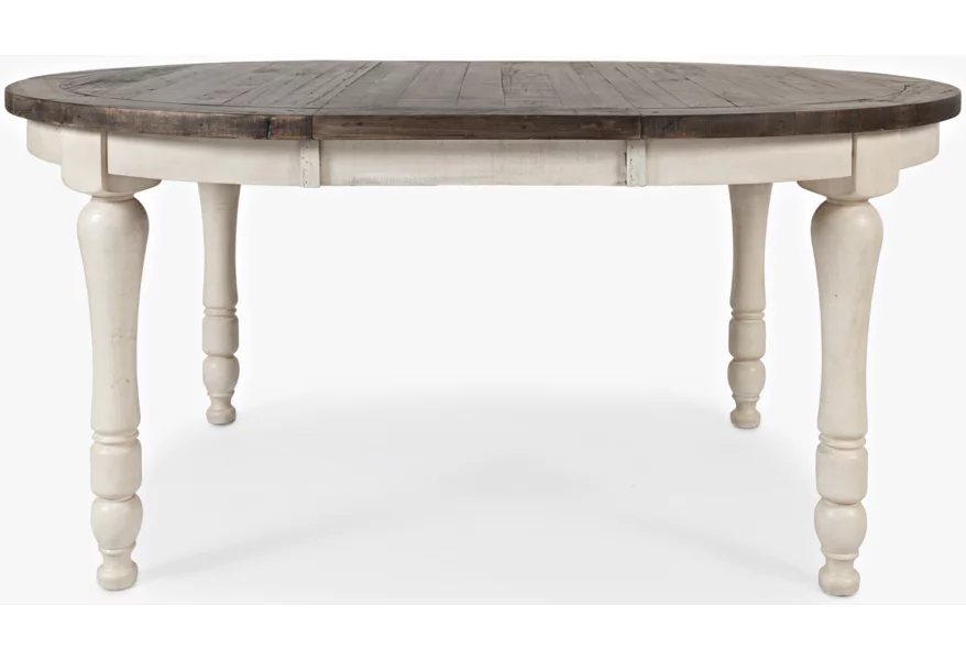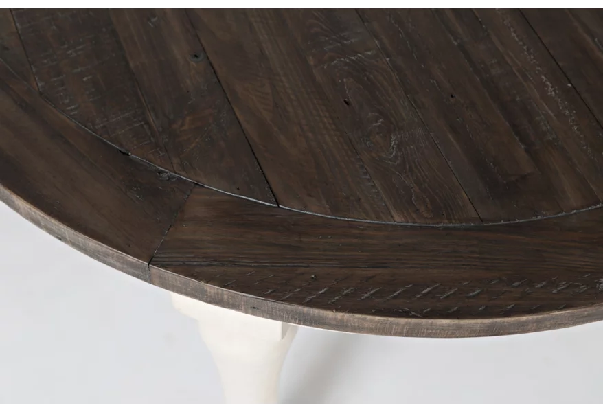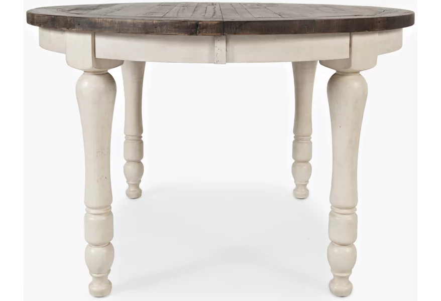 Style Elements Finish Description Tasteful distressing should be expected and enjoyed Base Finish Darkness Dark Features & Function Number of Table Leaves 1 Size of Table Leaves 18 Table Seats (with leaf/leaves): Up to 6 Table Seats: Up to 4 Leaf Type Removable Table Features Includes Leaf/Leaves Storage Storage Includes (1) 18″ extension leaf Dimensions Depth (front to back) 48″ D Width (side to side) 48″ W Height (bottom to top) 30″ H Product Stool Height Standard” Leg or Pedestal Legs Top Shape Oval Construction & Materials Drawer Suspension Full extension drawers Table Top Material Wood Case Construction Made from Reclaimed Pine Item & Dimensions Manufacturer Jofran