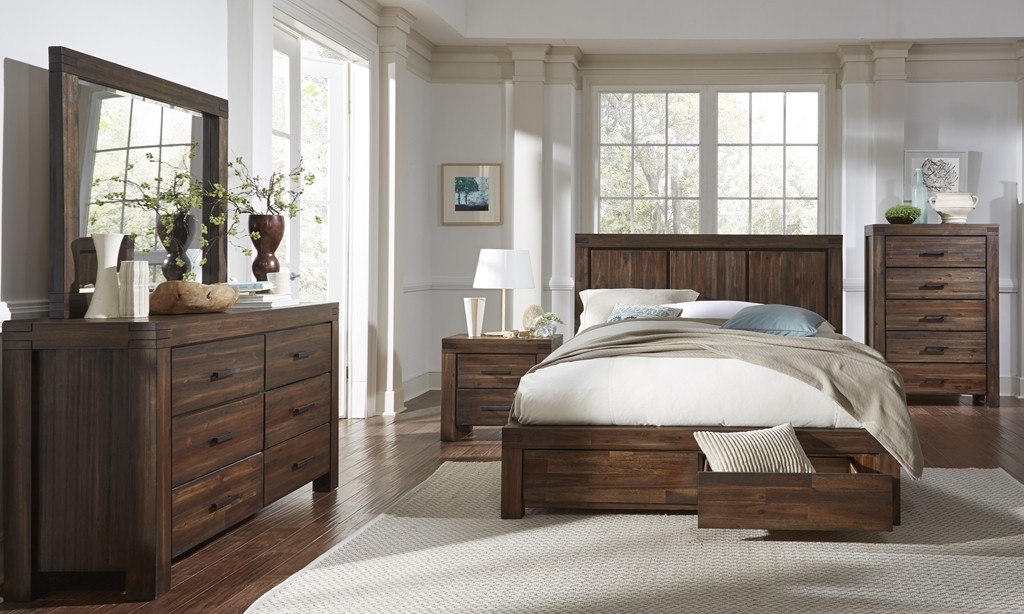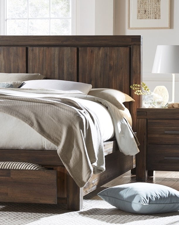 • Solid Acacia fronts, tops and sides; plywood backs, drawer boxes, and bed slats.
