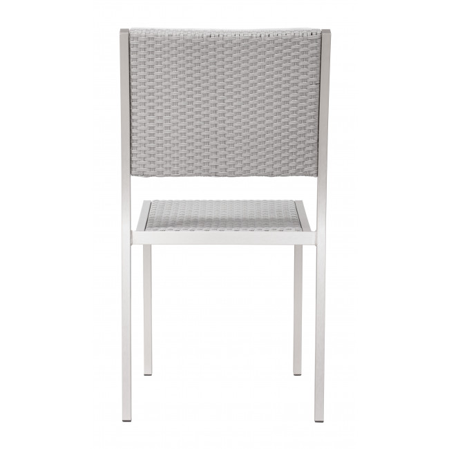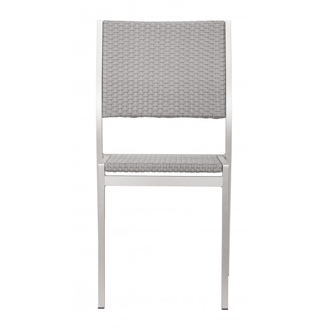 The Metropolitan Dining Chair has clean, simple bones. The frame is brushed aluminum with a textile seat and back. Stackable for easy storage.