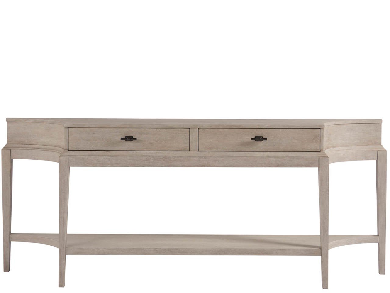 The classically chic Midtown Console Table welcomes polished style and convenient functionality into rooms with its 2 drawers and an open shelve display.