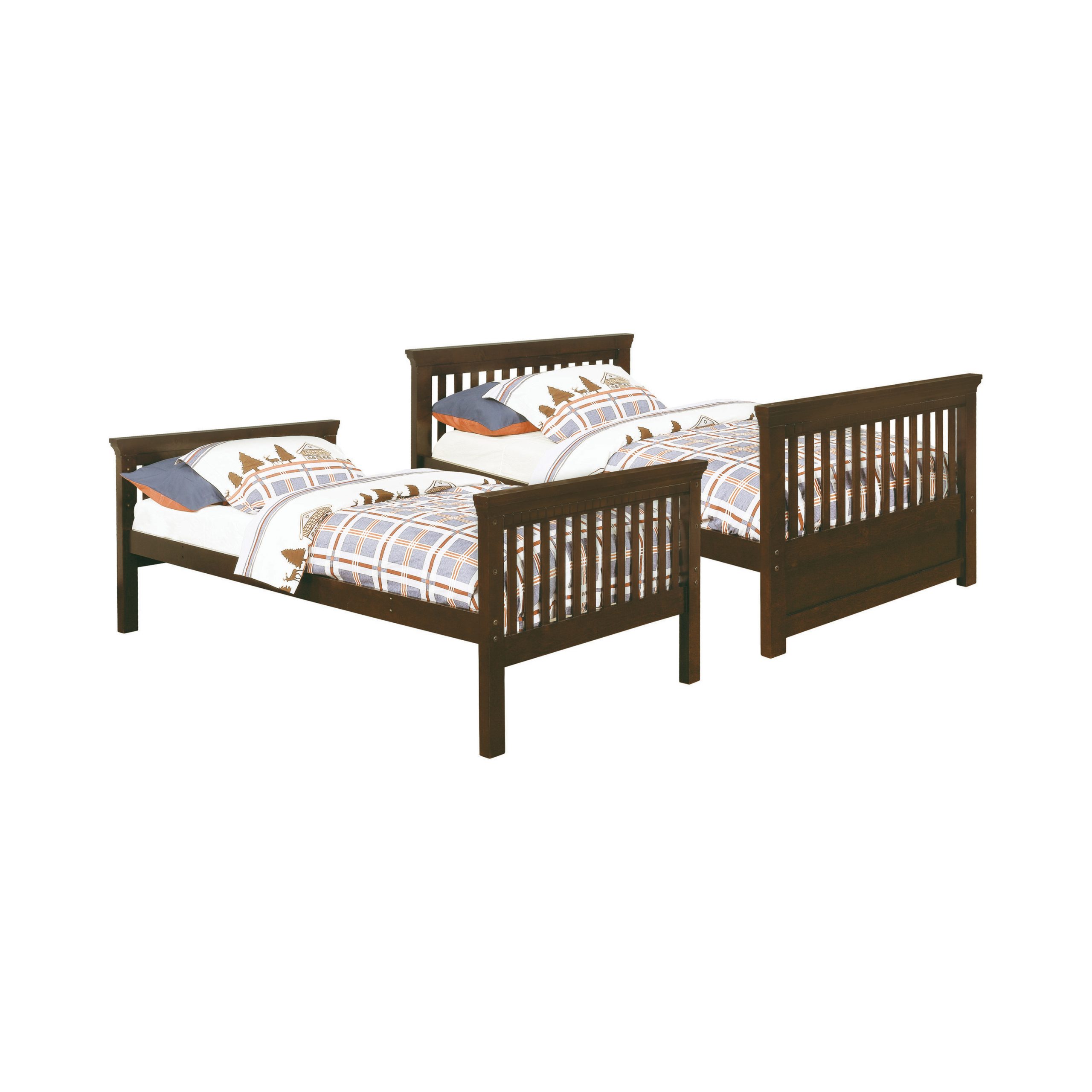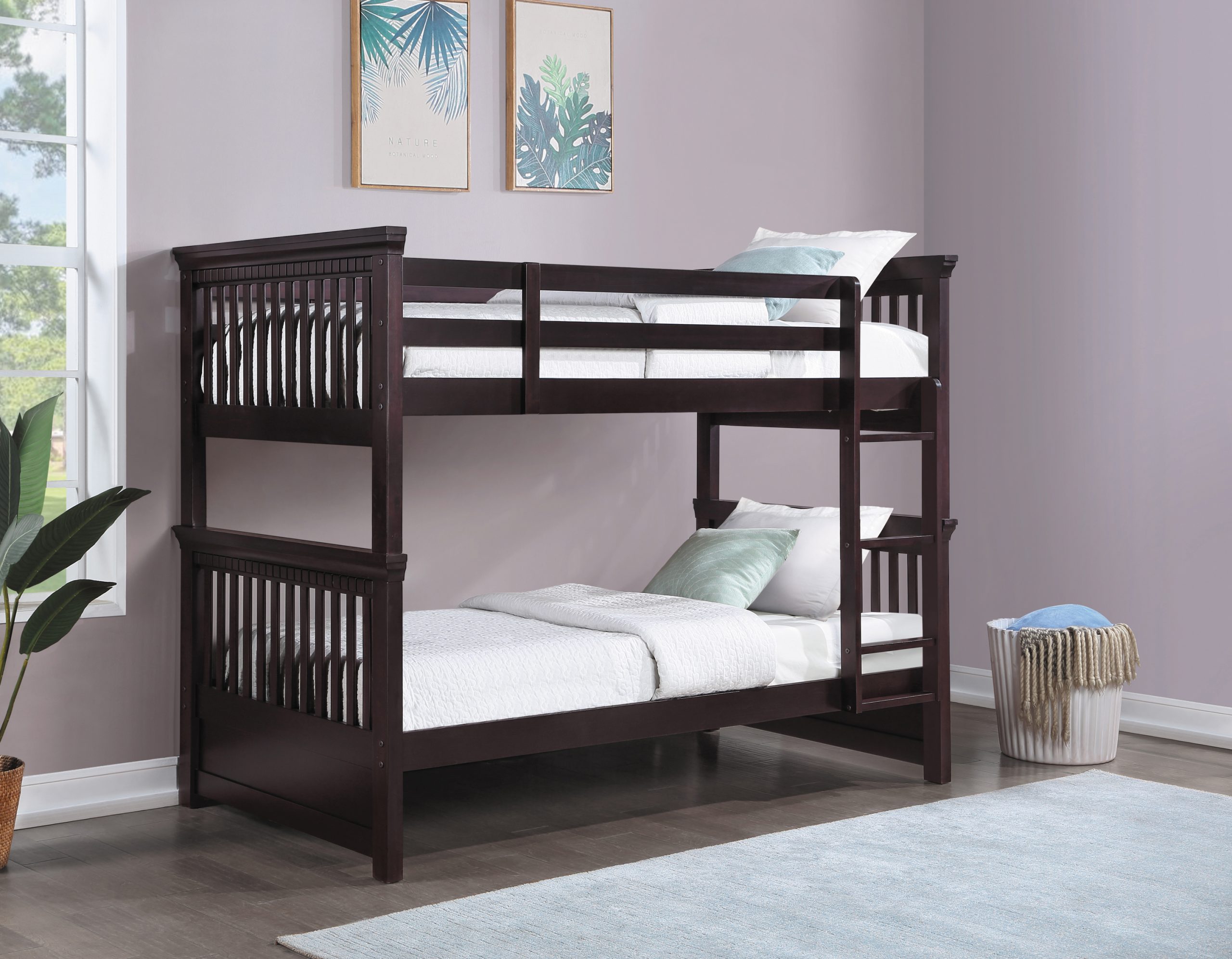 - Sleek twin over twin bunk bed in dark cappuccino finish