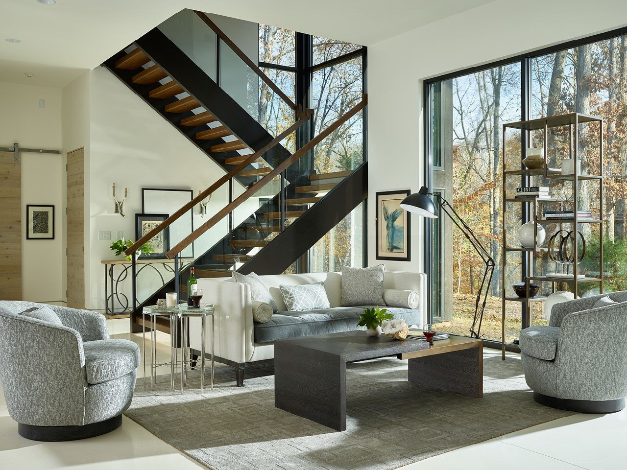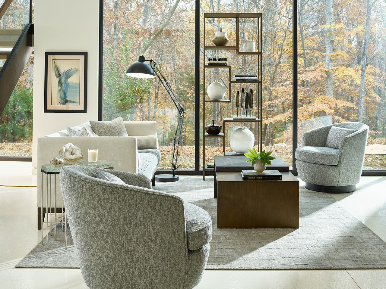 DETAILS A perfectly hexagonal cut of bubble glass stands atop six long, silver legs in the Stewart Chairside Table, bringing a freshly regal aesthetic to spaces.
