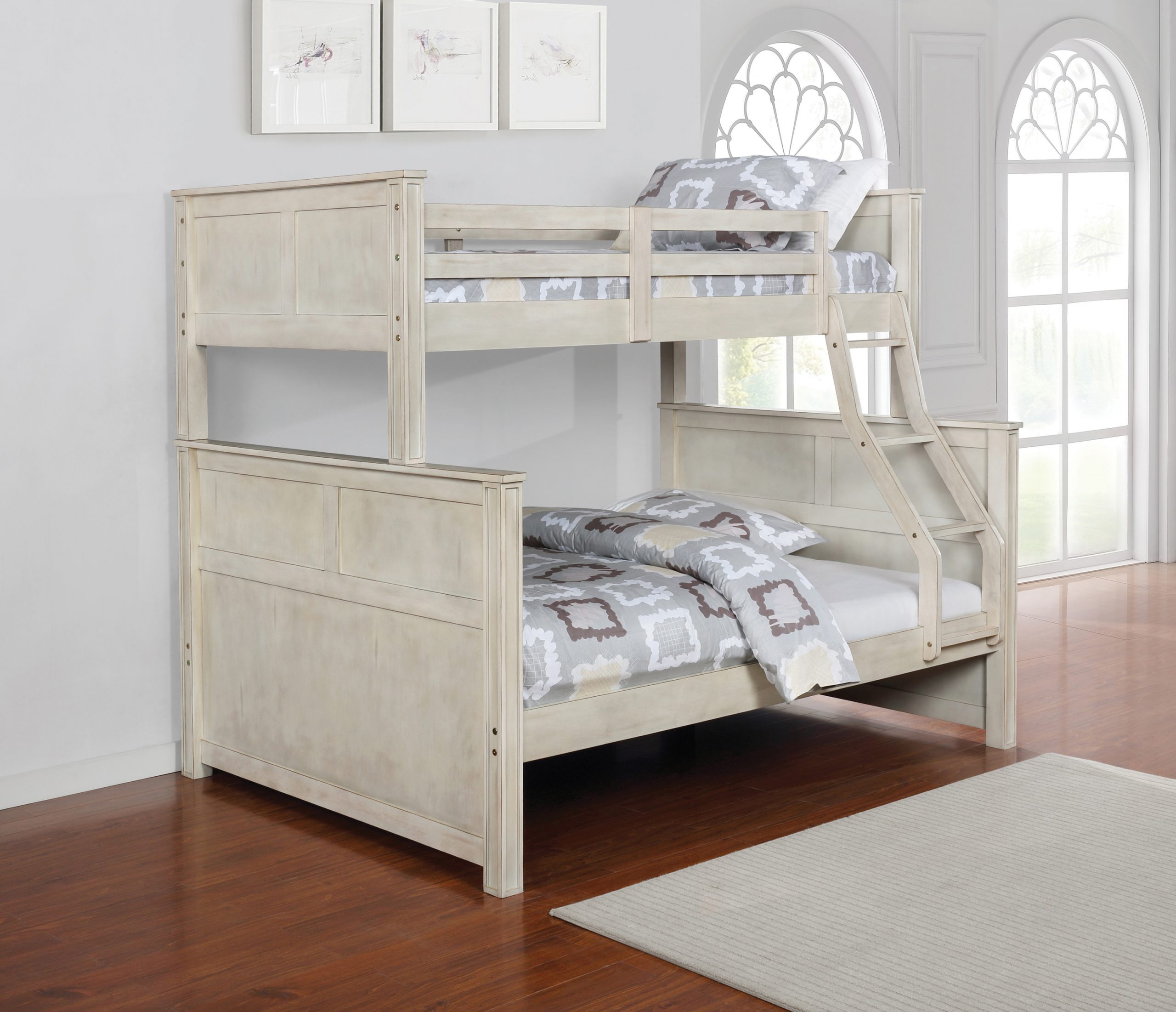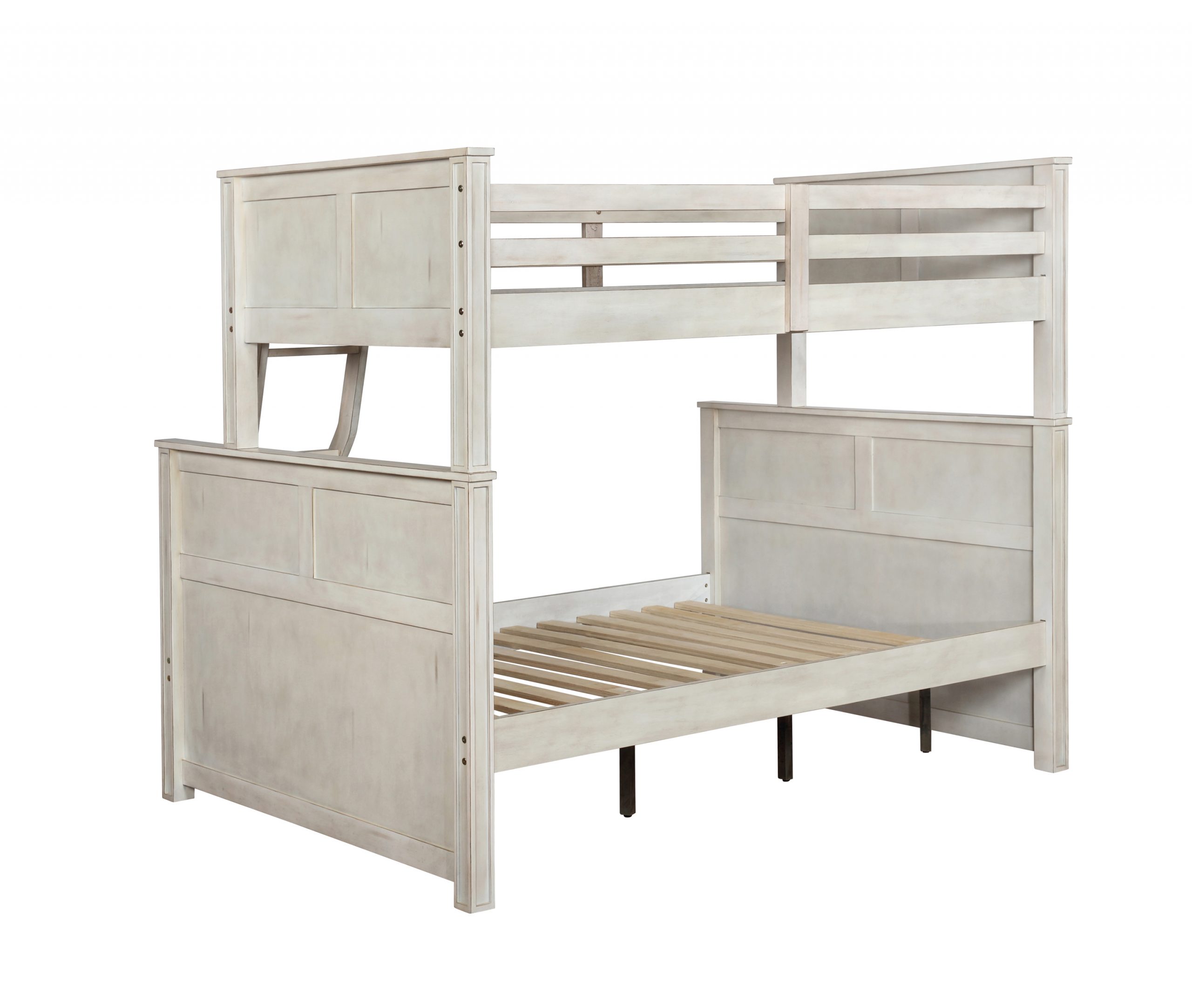 - Modern rustic twin over full bunk bed in hand-brushed antique white finish