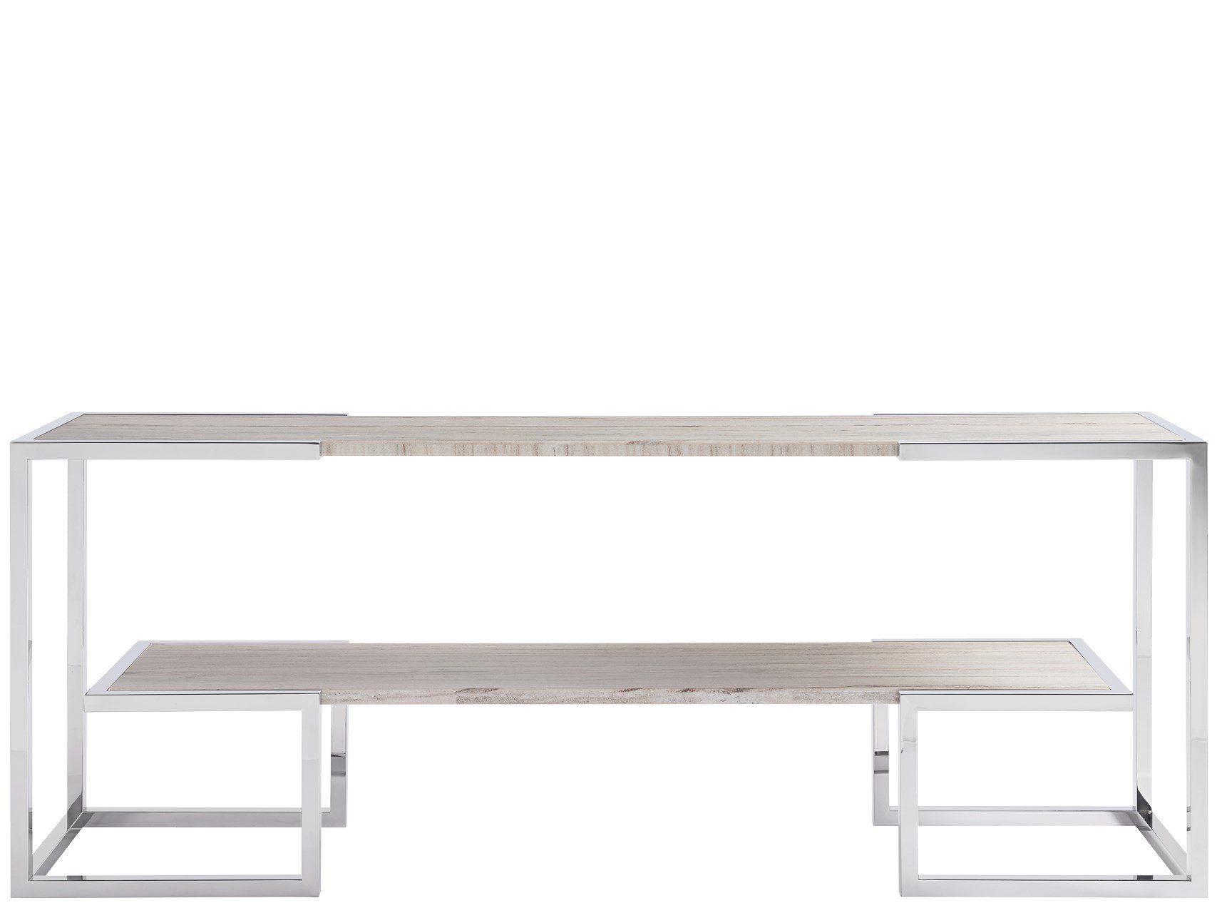 With a gentle nod to geometric lines, the Paradox Console is a playful home accent built with two open-air inset stone shelves framed by a cool stainless steel body.