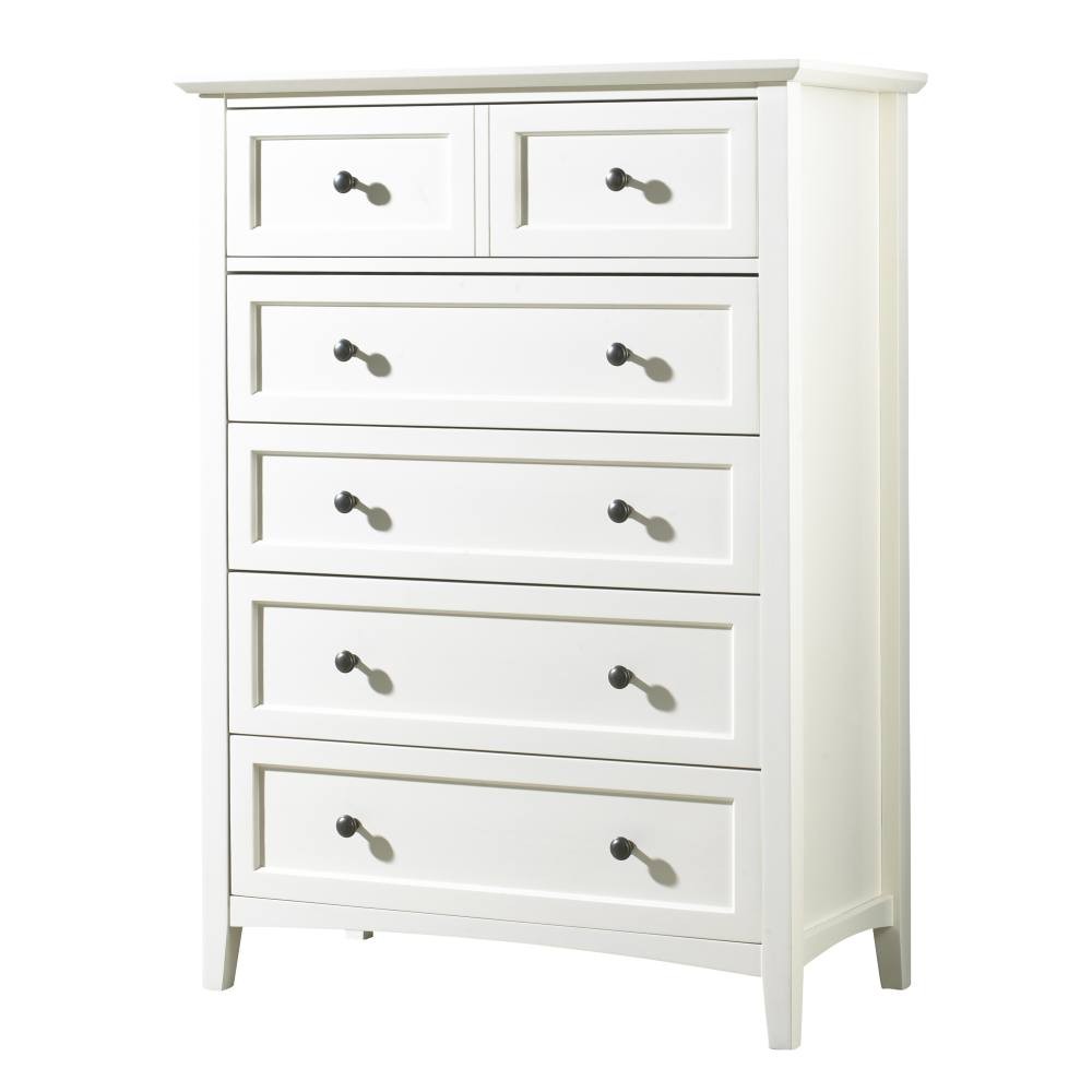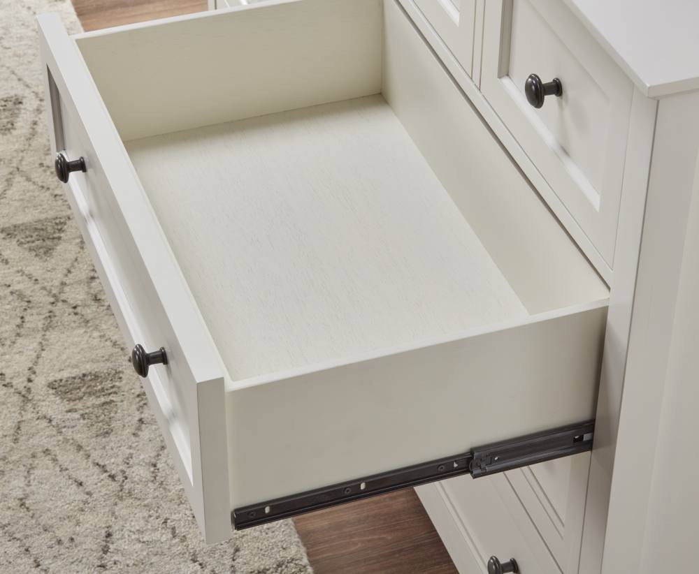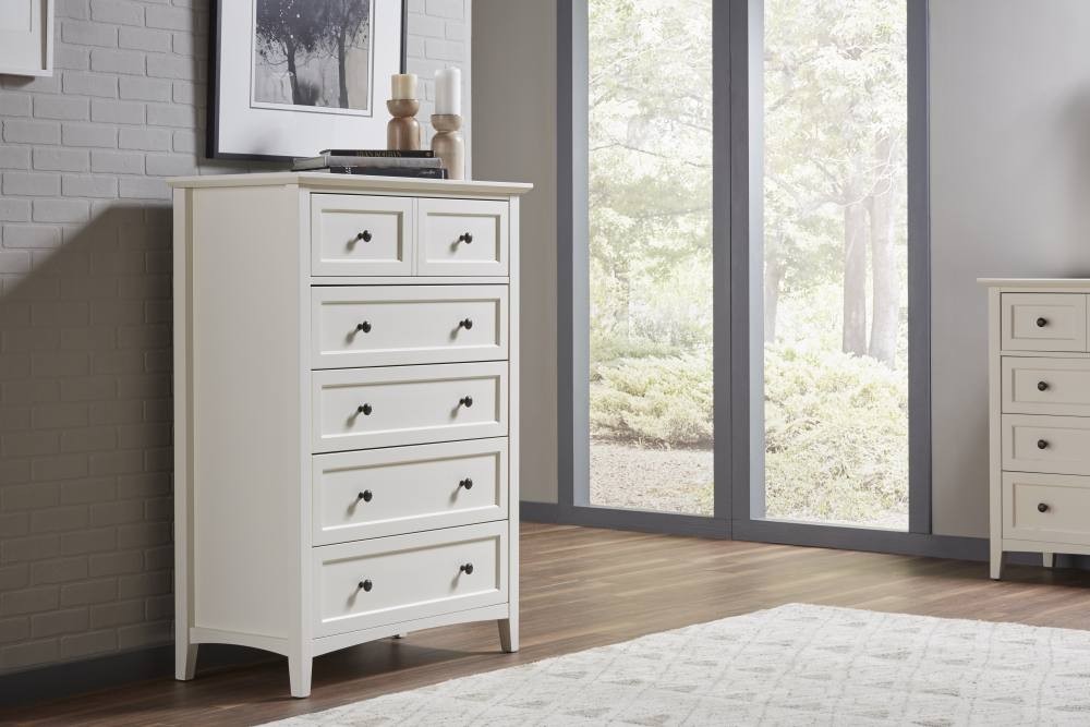 Get a fresh take on classic Shaker style with the Paragon bedroom from Modus Furniture. Crafted entirely from solid Mahogany in an opaque white finish, this group features a simple, framed panel design with reverse bevel floating tops. Casegoods rest atop tapered legs with a gently arched lower side cross.