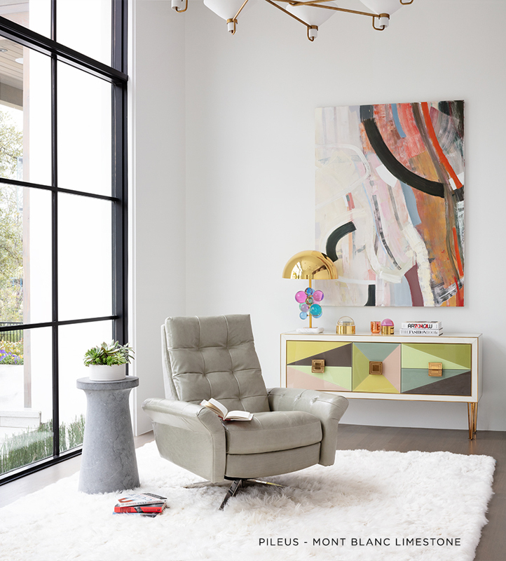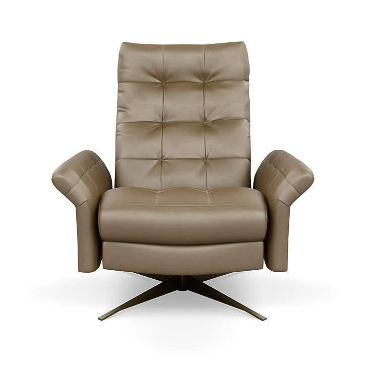 The look combines dramatic splayed arms with plush down for ultimate comfort. The Pileus is available in three sizes, custom tailored to fit every body type. The Comfort Air features a revolutionary weight balanced mechanism that instantly responds your every move. Customize the Pileus by choosing any leather, fabric, or bring your own personal covering. A disc base is available in Natural Walnut or Brushed Metal, while a four star base is available in Antique Brass, Burnished Bronze or Polished Nickel.