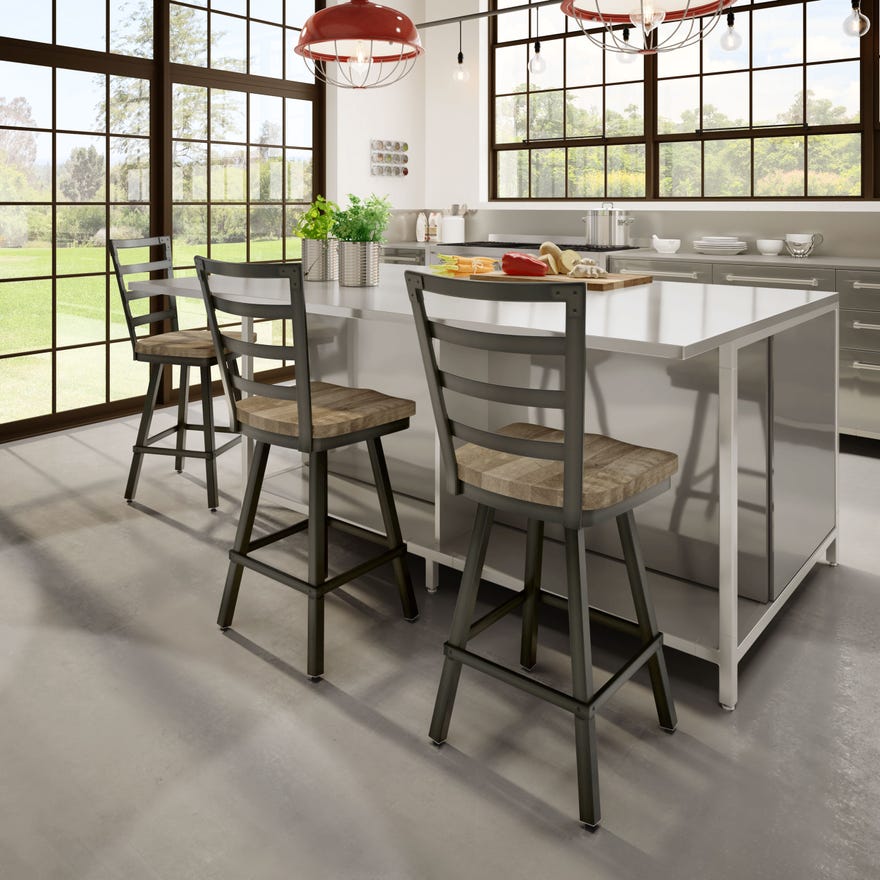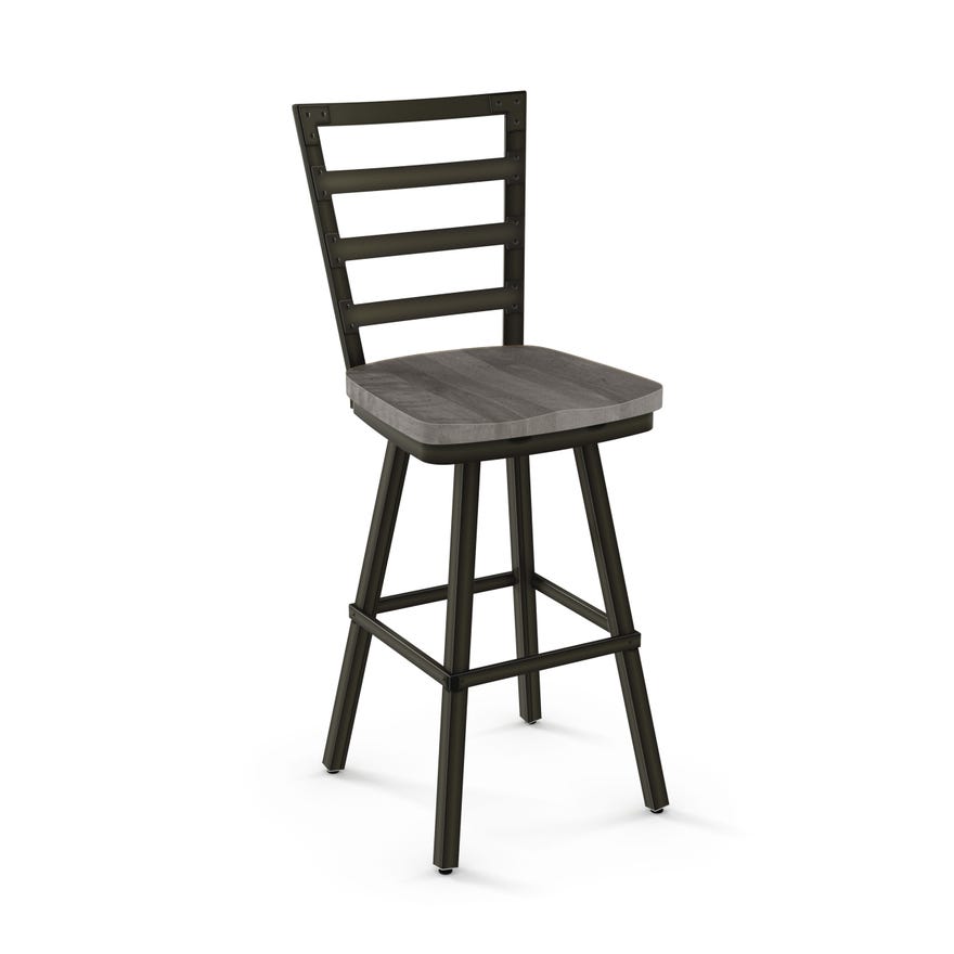 Want to stay young and on-trend, laughing in the face of Father Time? Then the high-backed Prescot stool echoing the industrial era is just the ticket. Four riveted slats anchor the vertical lines of the back, driving home the rebuilt look. And with its solid metal base, this stool is nothing if not durable.