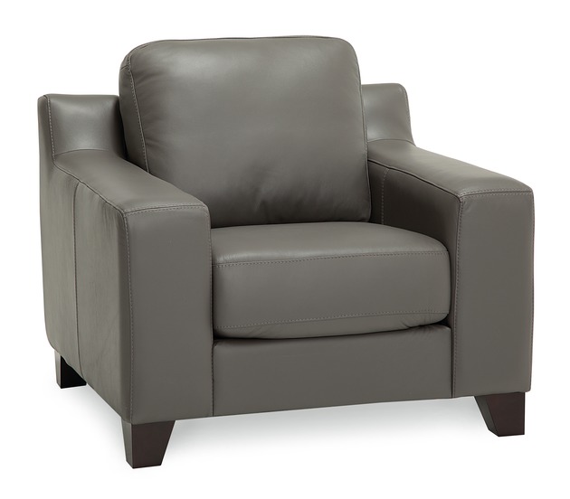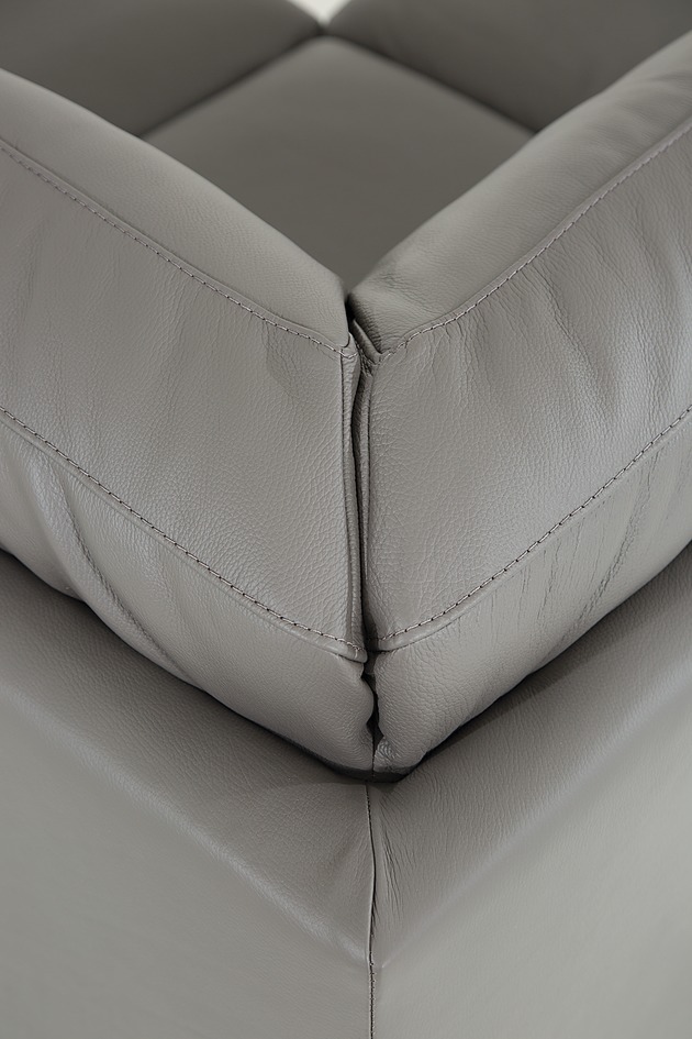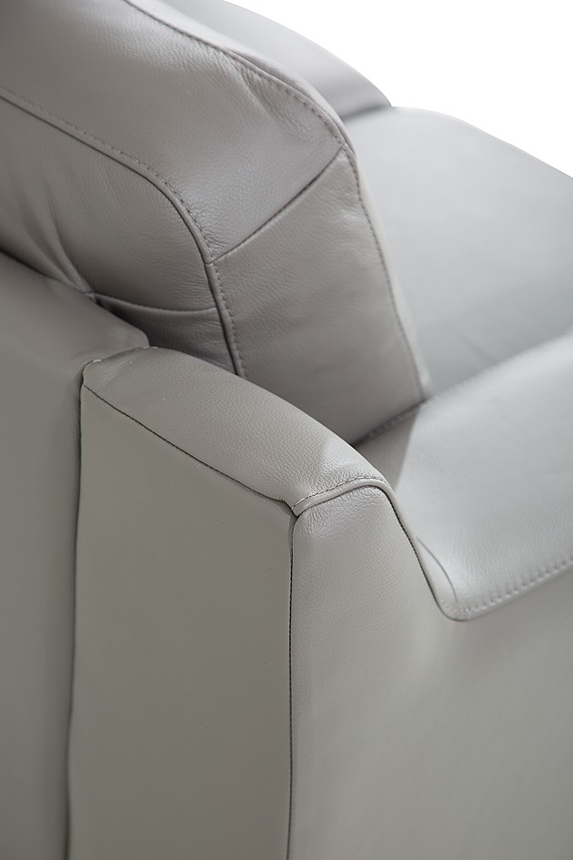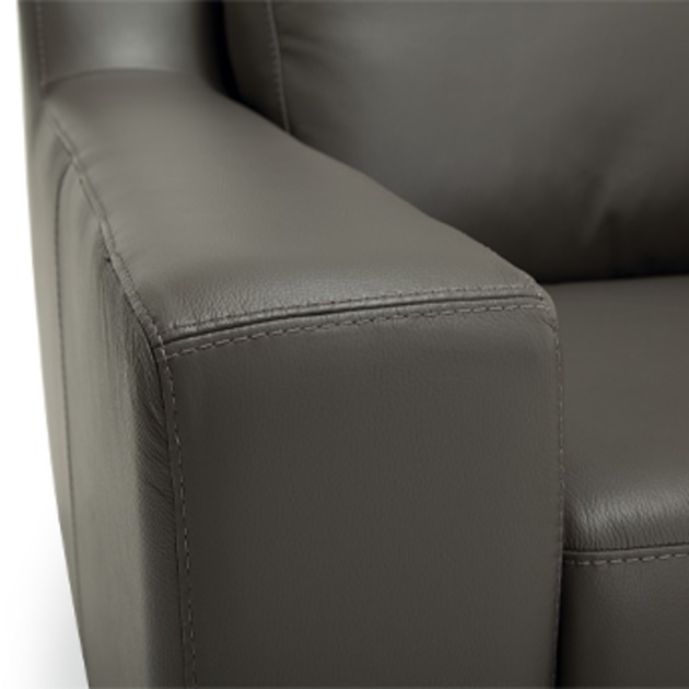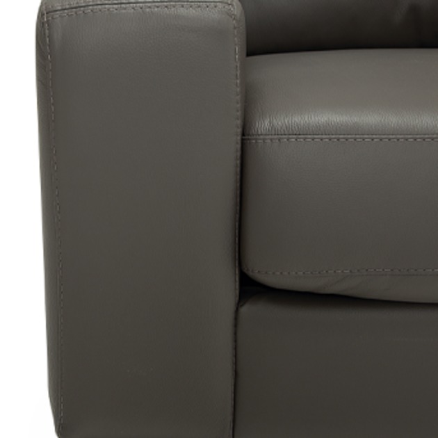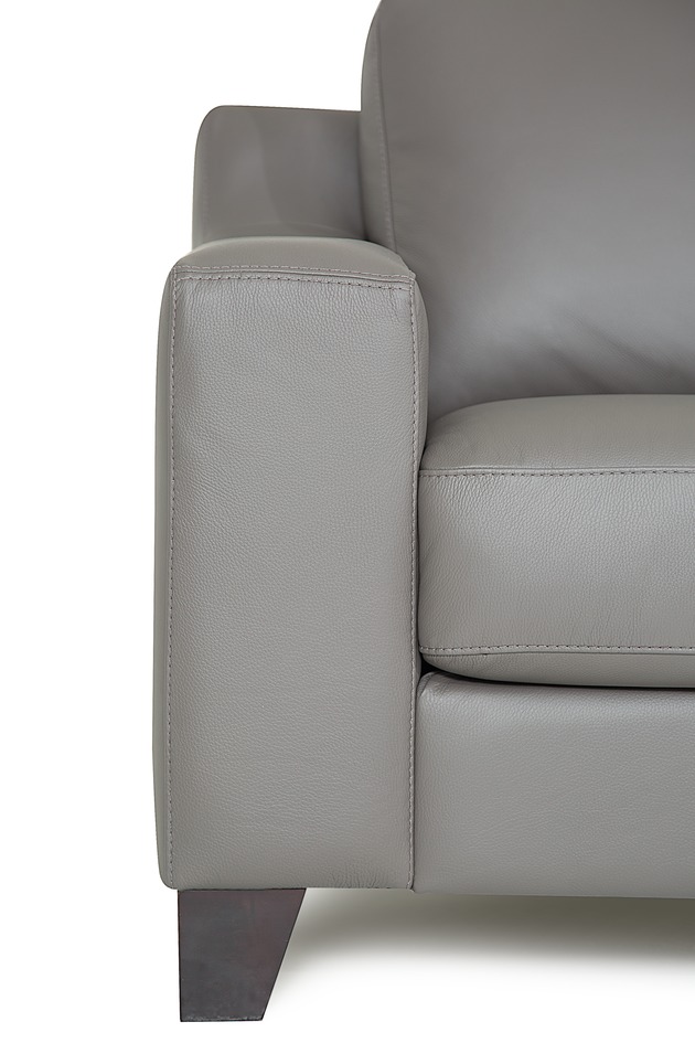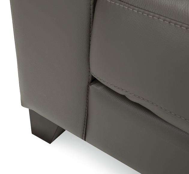 Modern top-stitching details are featured throughout and the seat cushions feature a box-border detail. The Reed collection has a solid wood, espresso finish leg that finishes the look in both a sofa or a sectional. The Reed collection looks great in both leather and fabric, making it an adaptable style for any room design.