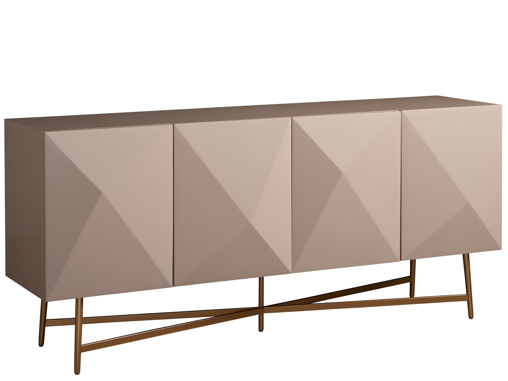 Bold and elegant, the Runway Console offers a complete storage solution with 4 doors, adjustable shelving, and wire-management; all encased in a chic taupe lacquer finish.