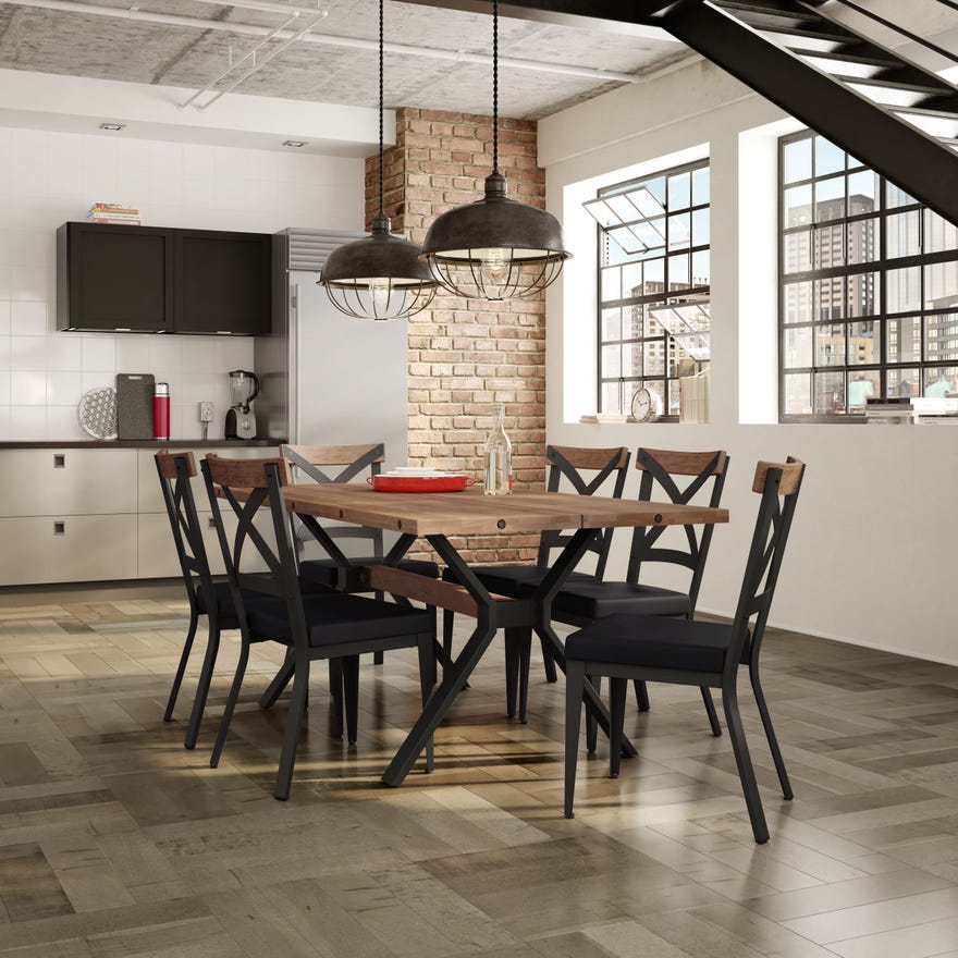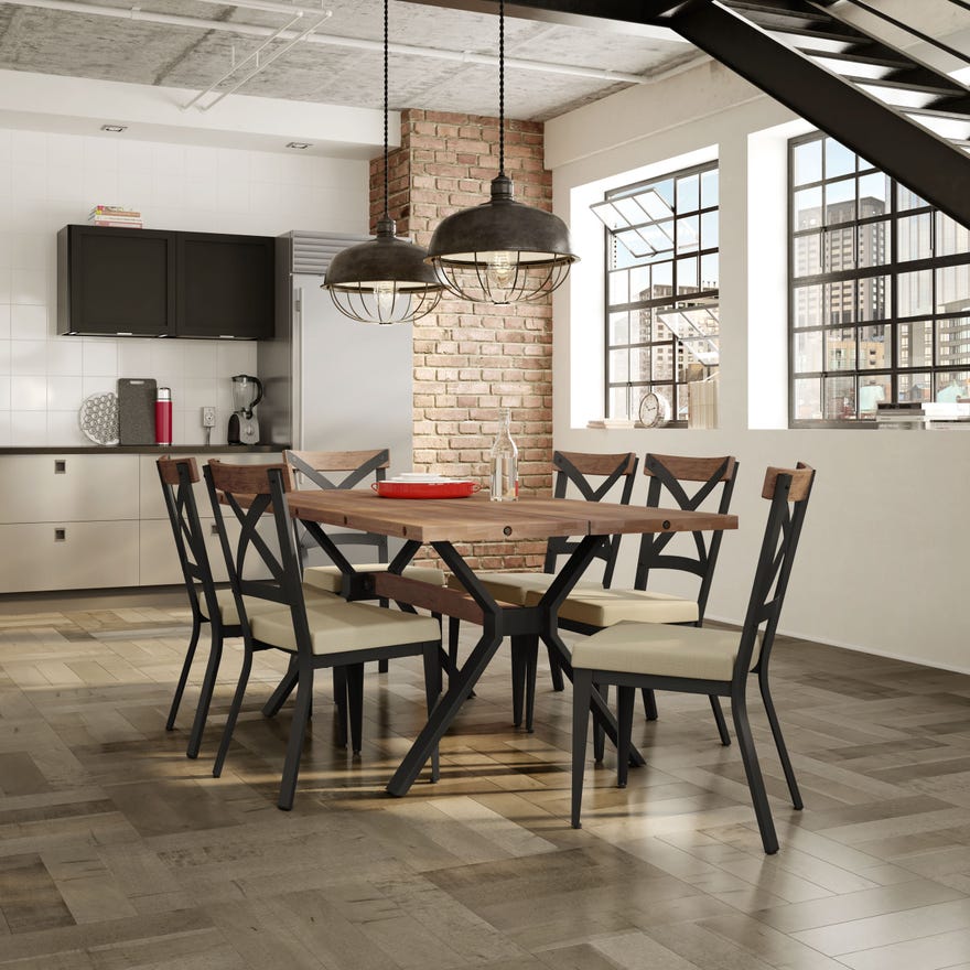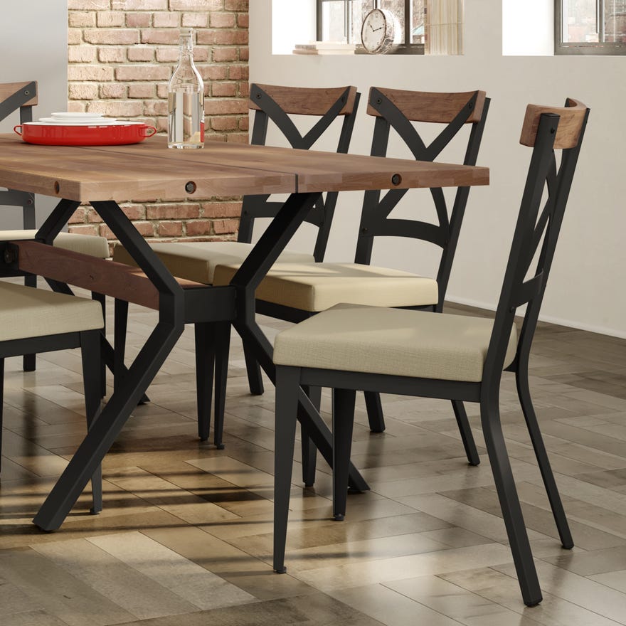 Industrial design is all about reclaiming the past, but adding a bohemian flair to a contemporary style. The Snyder chair captures the design trend with exposed screws and a worn-in look, putting unfinished metal, aged wood, and natural materials on display and playing with them in a fresh new way.