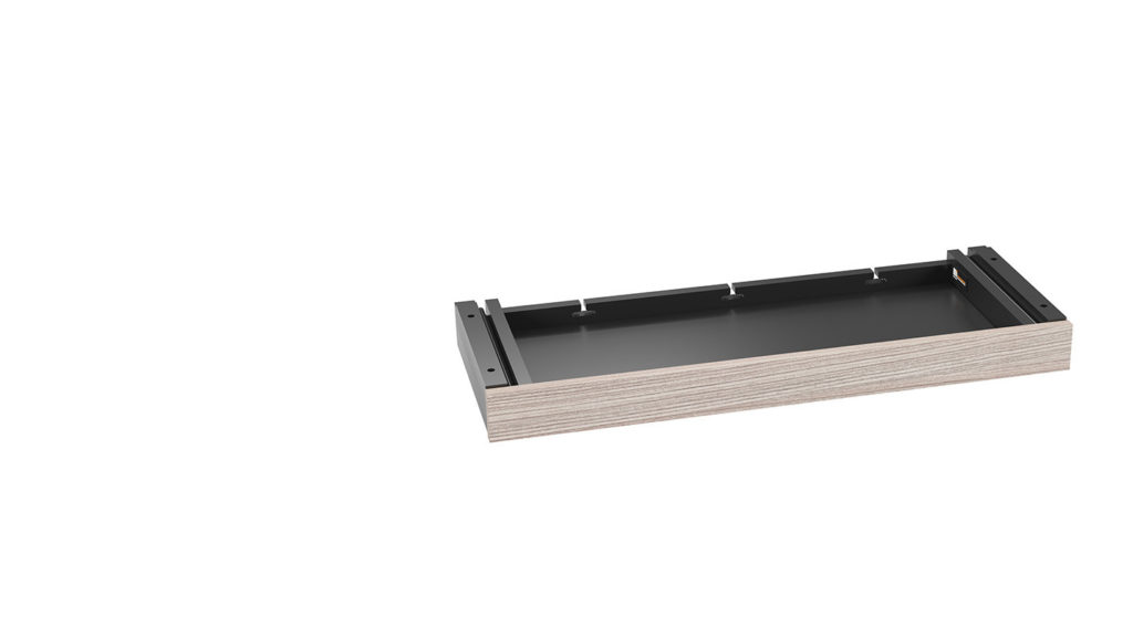The 6659 storage drawer can be added to any Stance Lift Desk model to keep everyday necessities close at hand. Select from three unique finishes—Black, Sepia, or Strata.